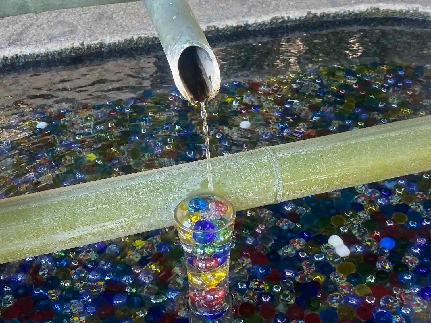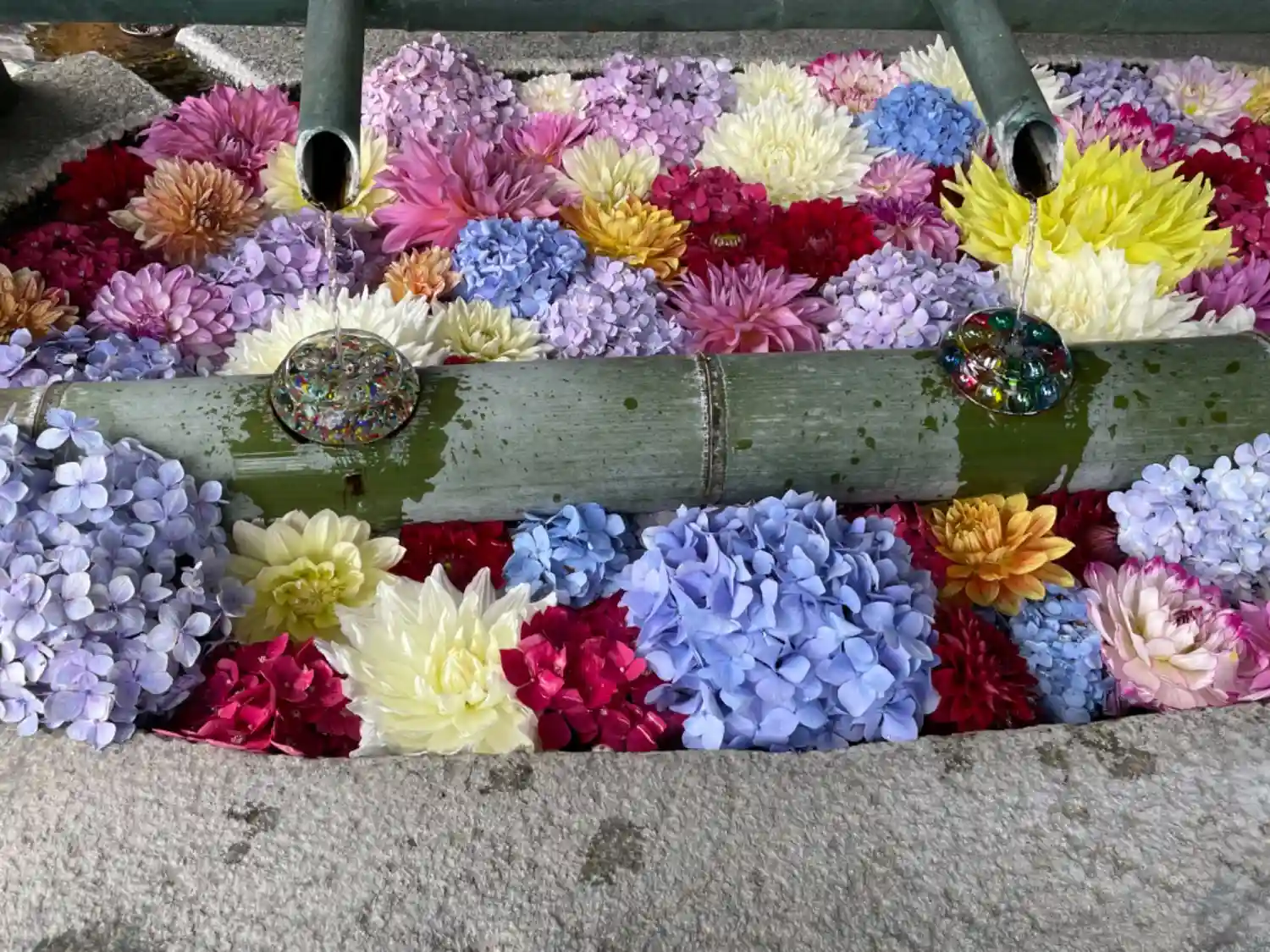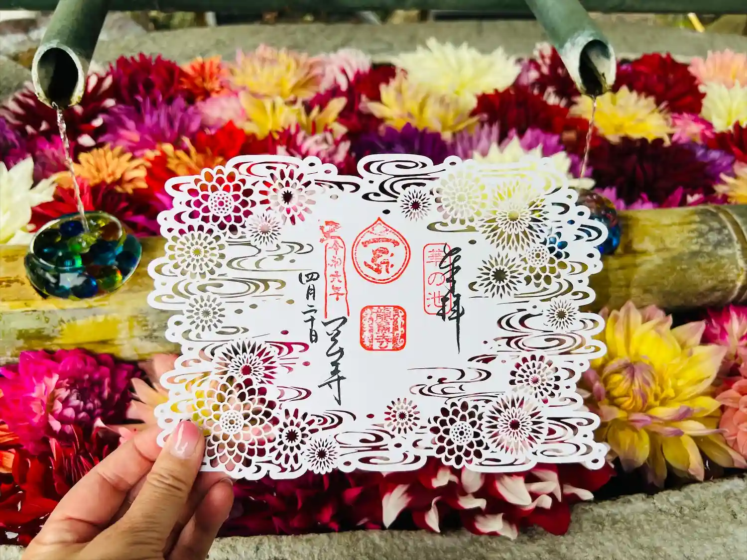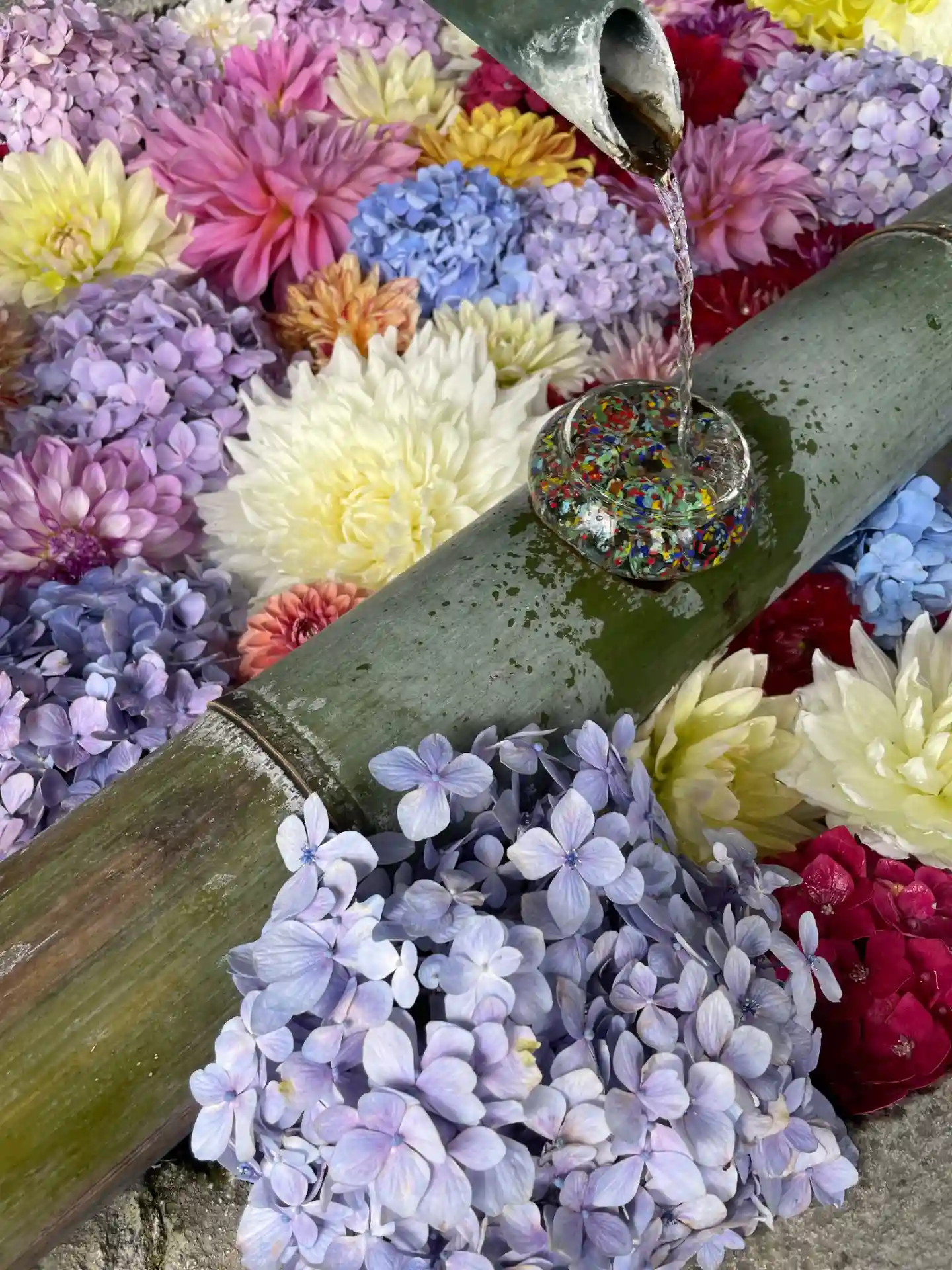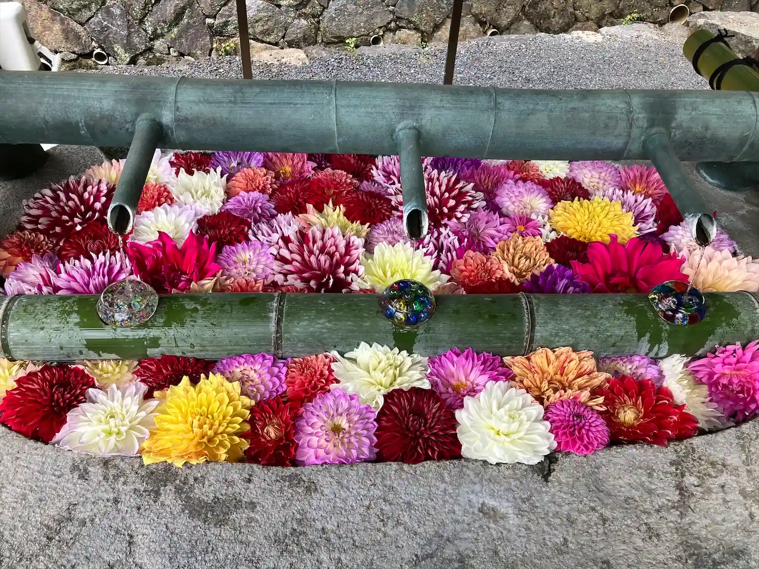 そして花手水で有名なお寺。夏はビー玉がキラキラしていて…