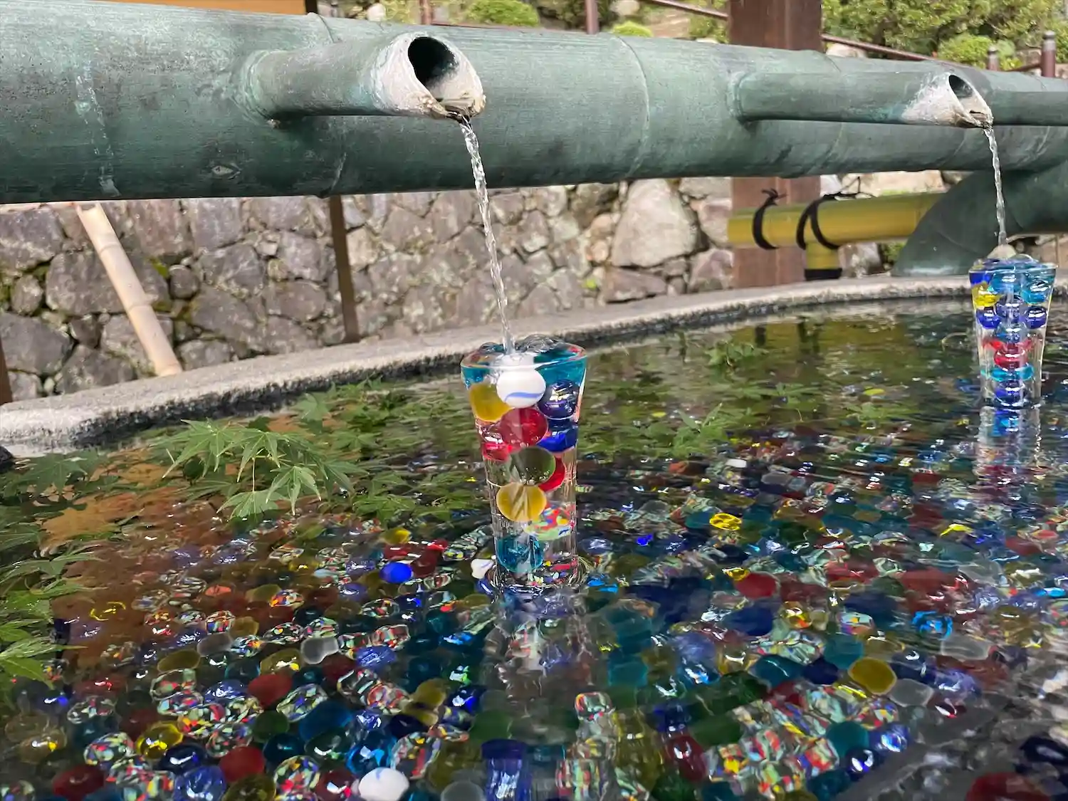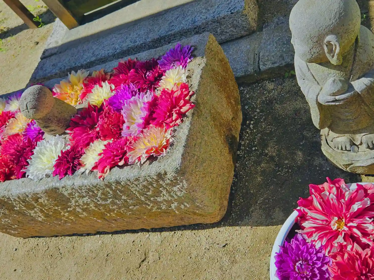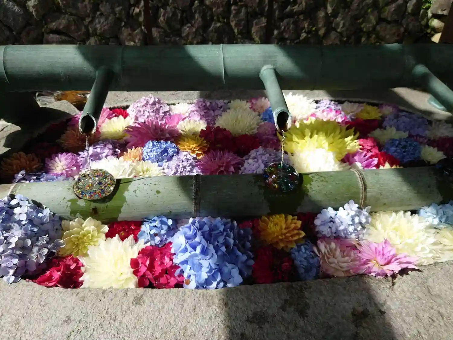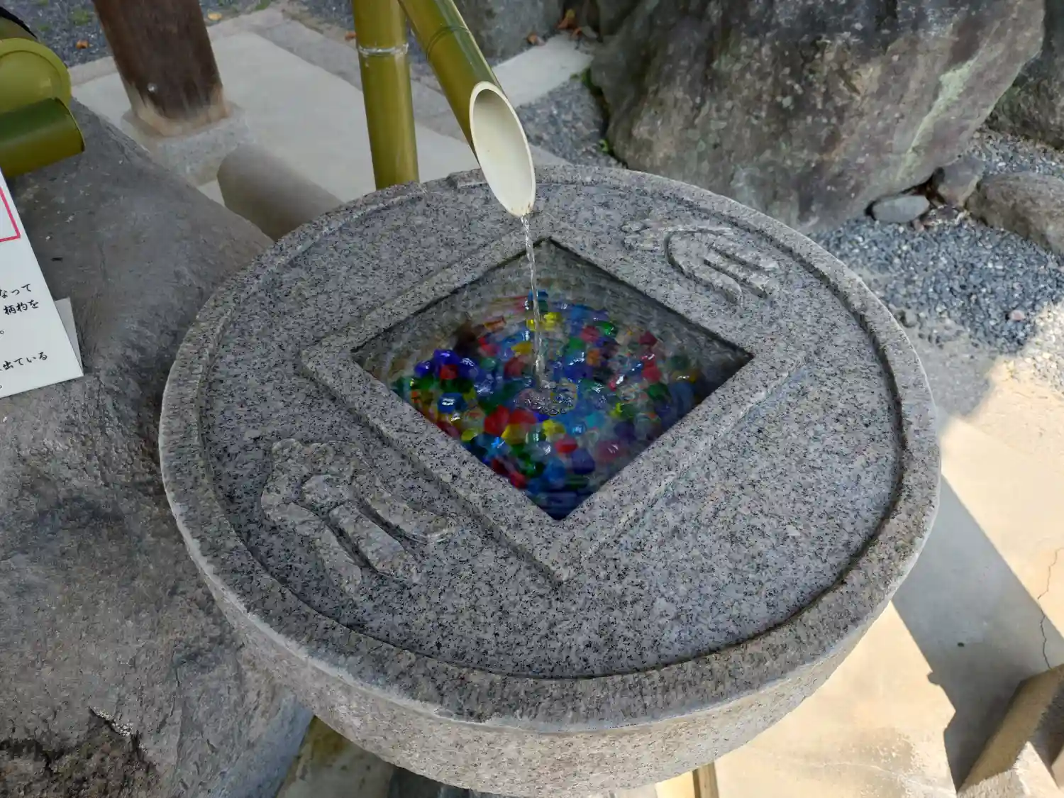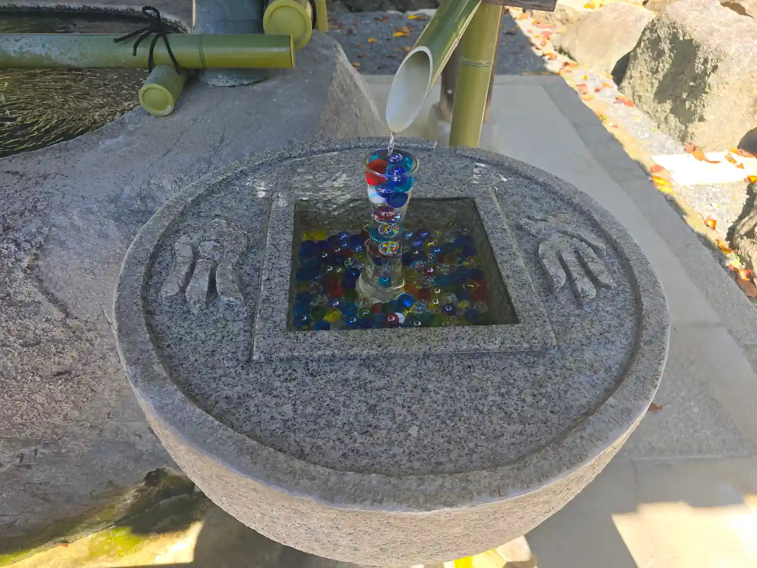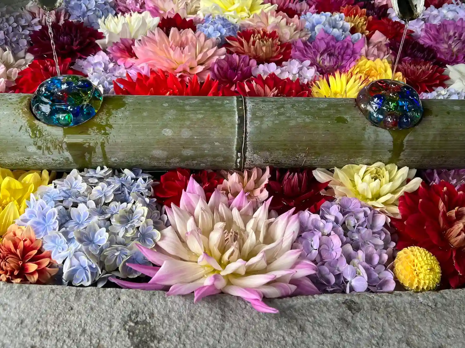 そして花手水で有名なお寺。夏はビー玉がキラキラしていて…