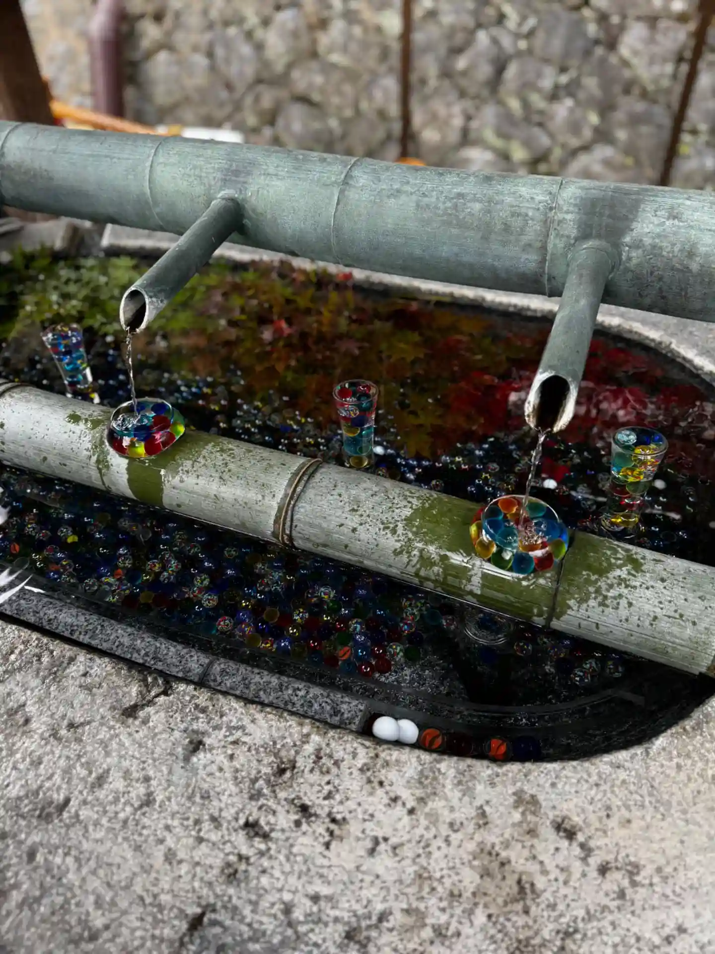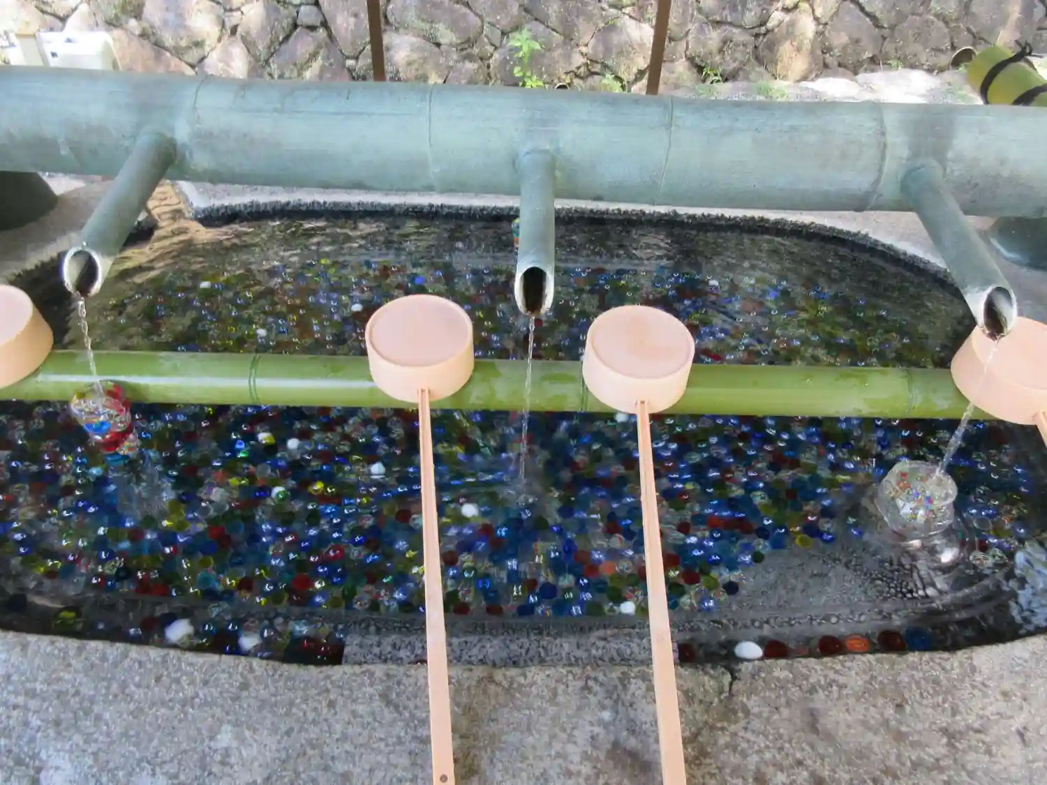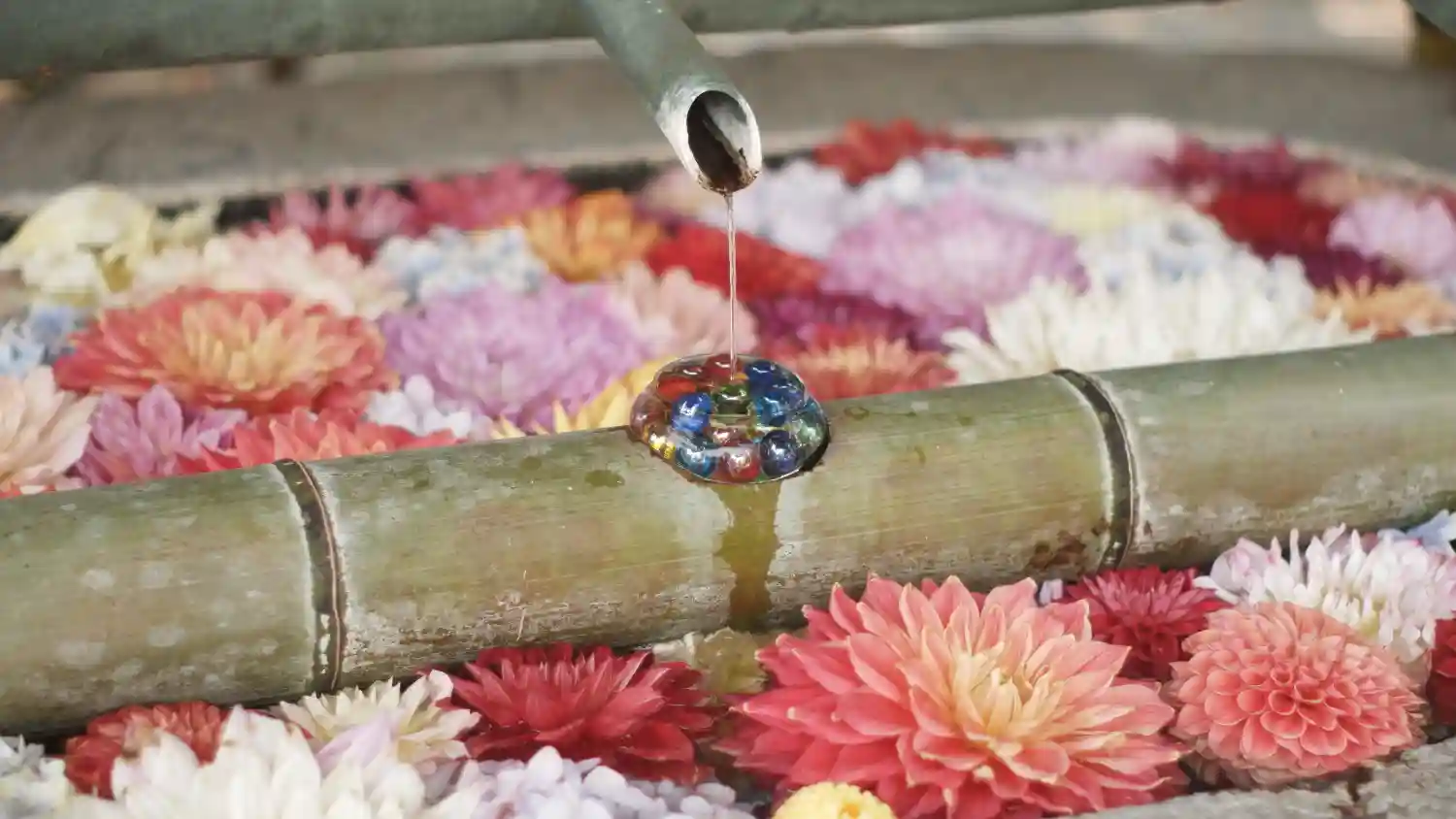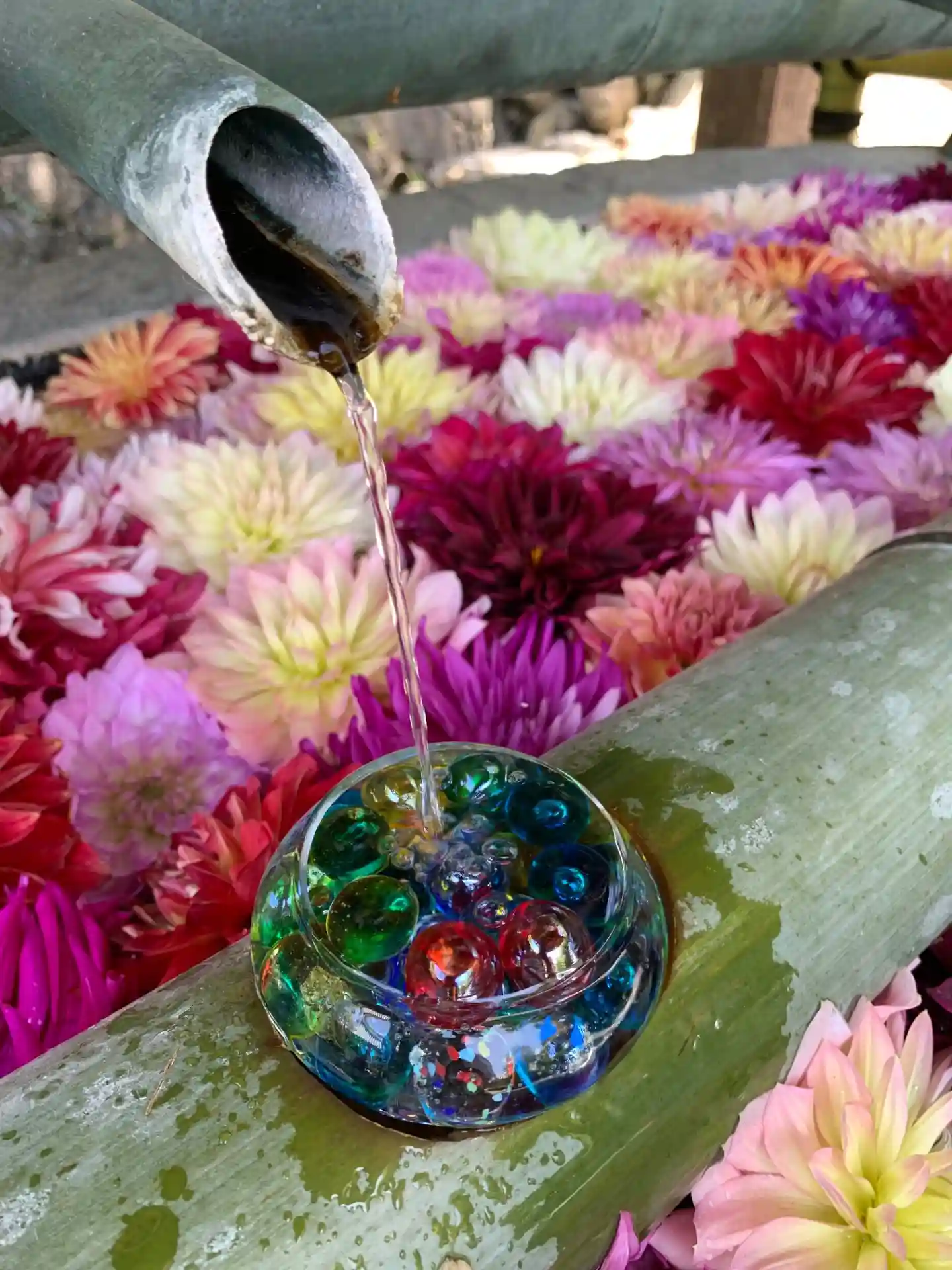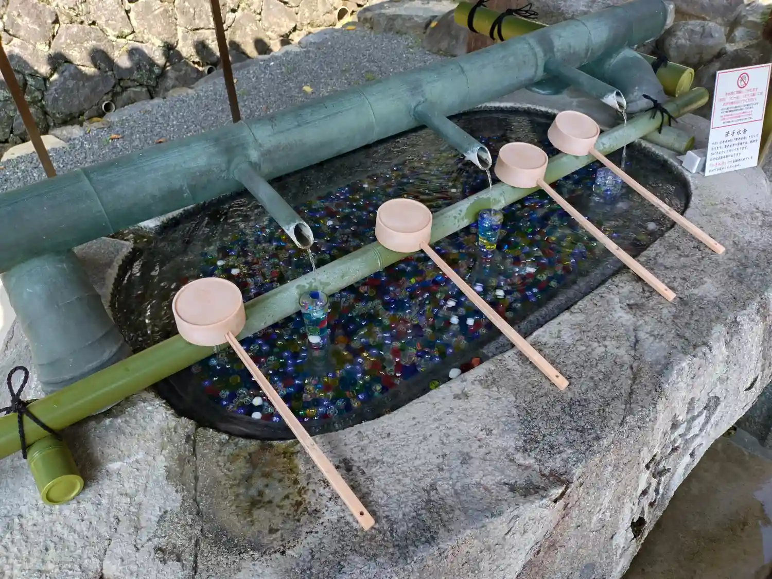 そして花手水で有名なお寺。夏はビー玉がキラキラしていて…
