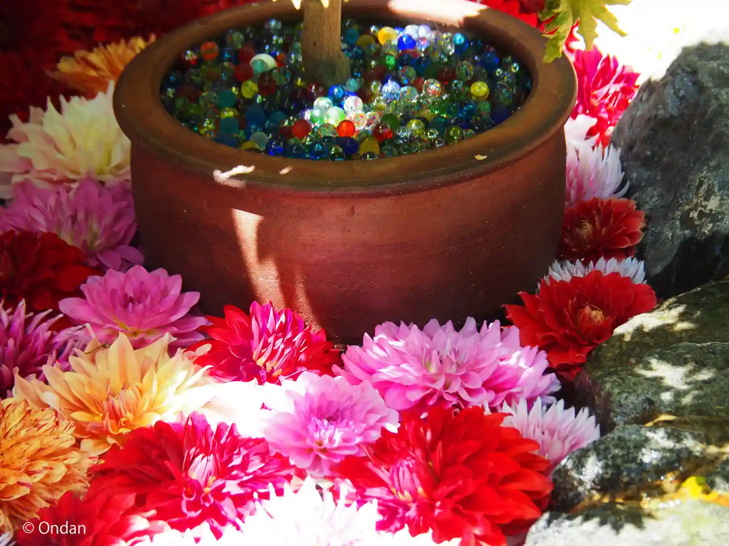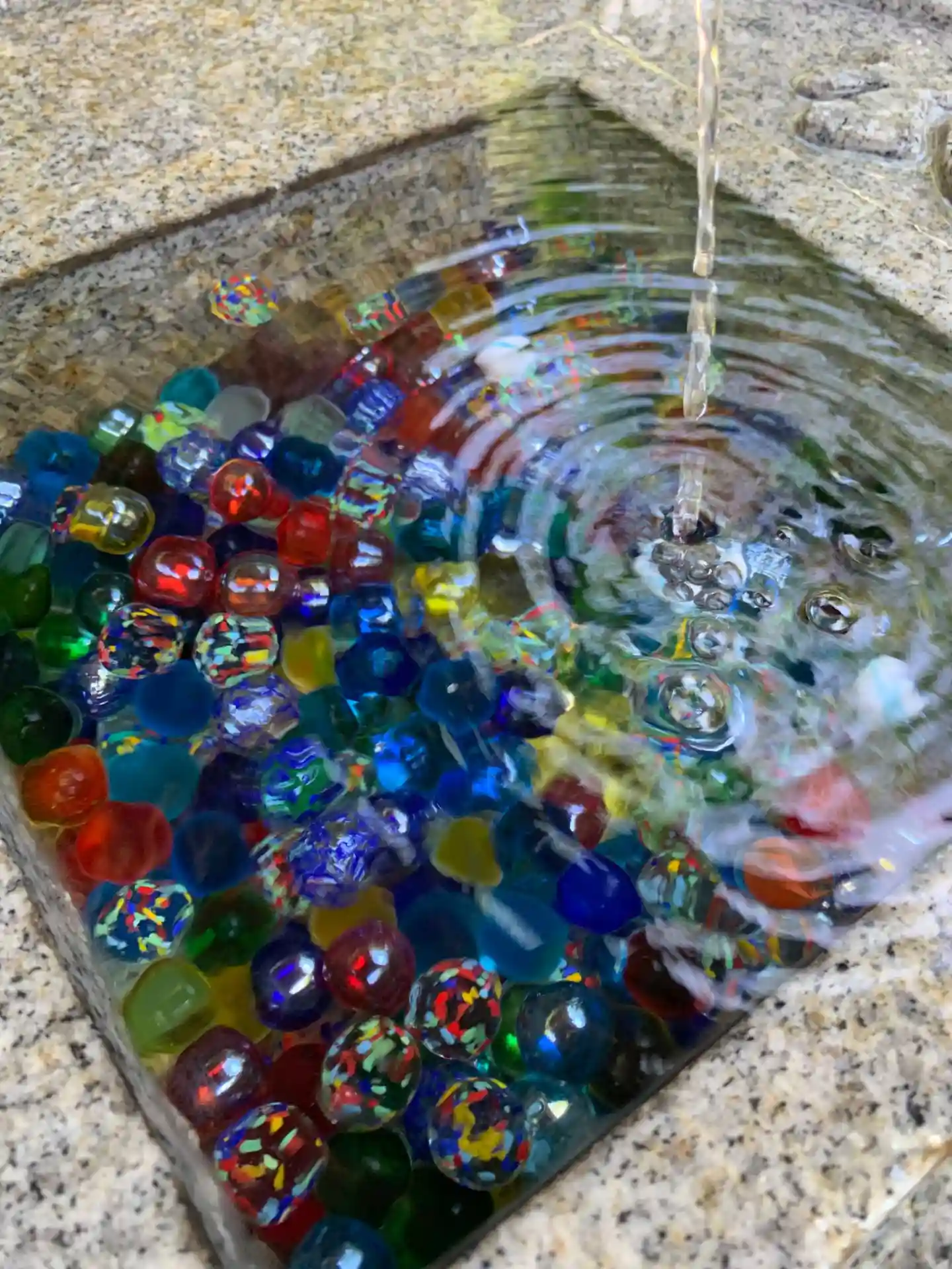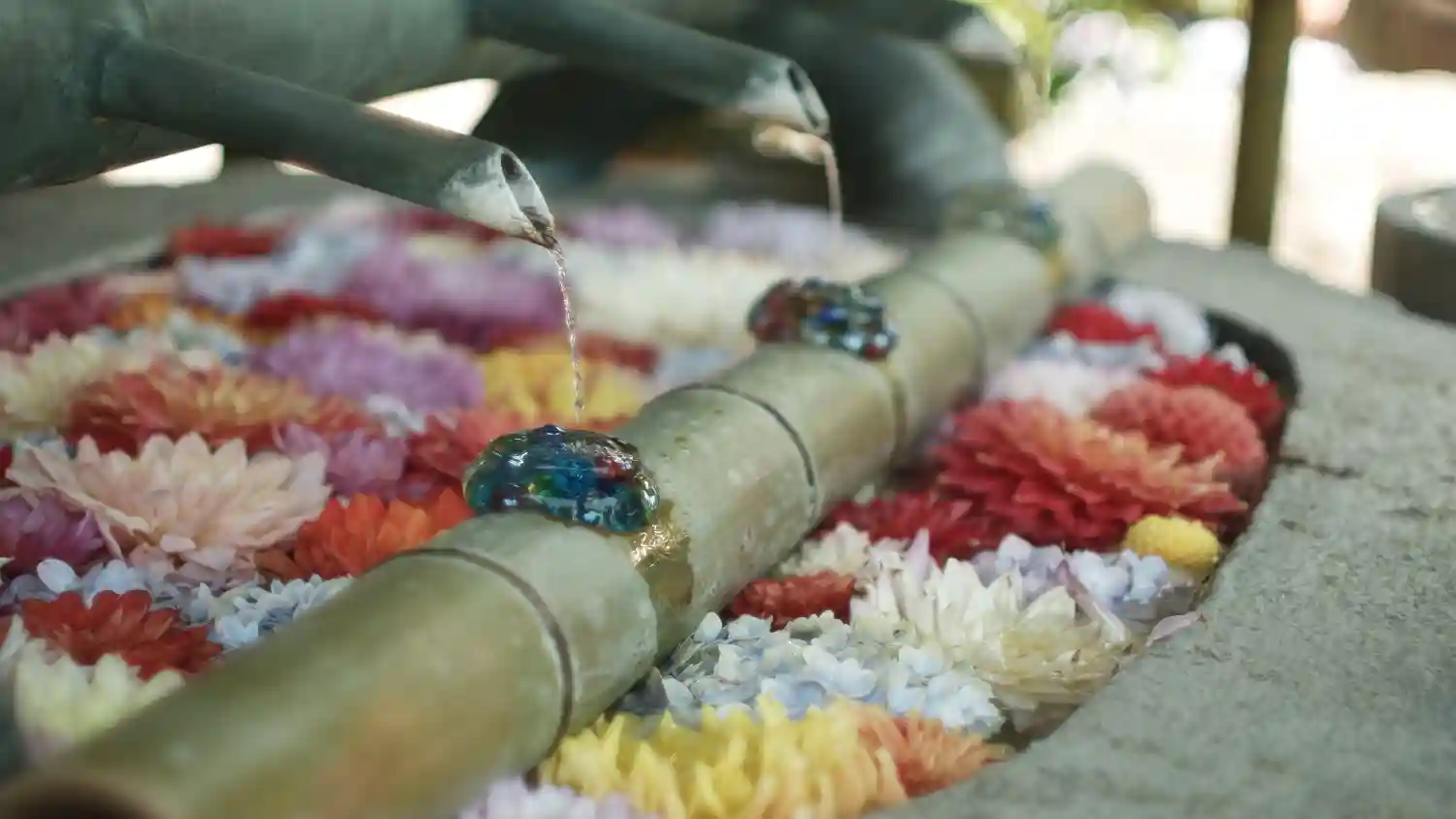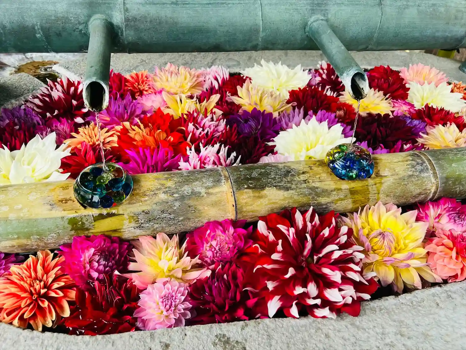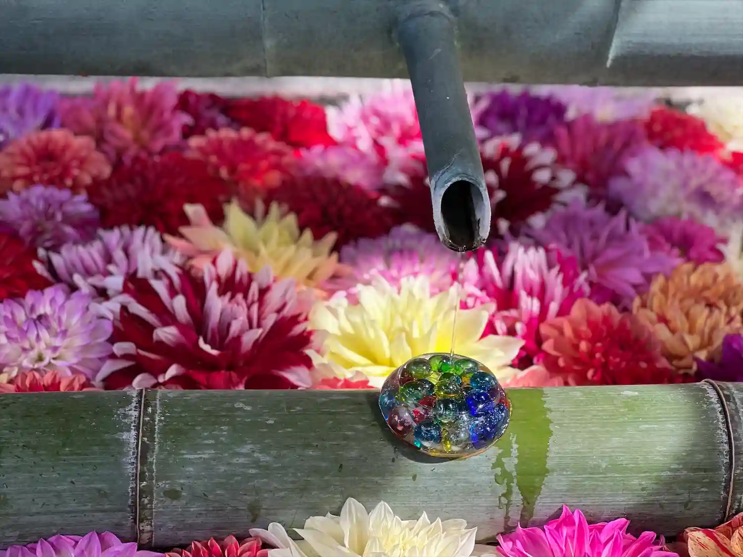 そして花手水で有名なお寺。夏はビー玉がキラキラしていて…