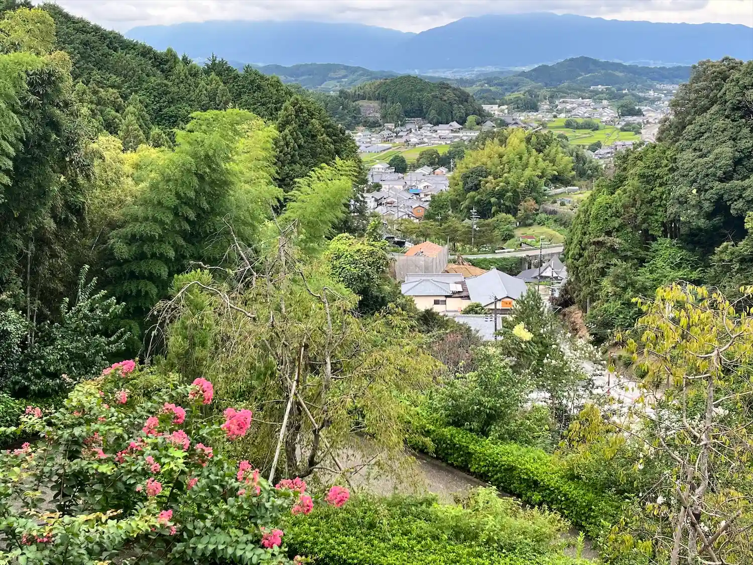 橿原神宮前駅からバスで岡寺前駅まで。強烈な坂道を、ゼェハァいいながら登り切った先には美しい風景が……