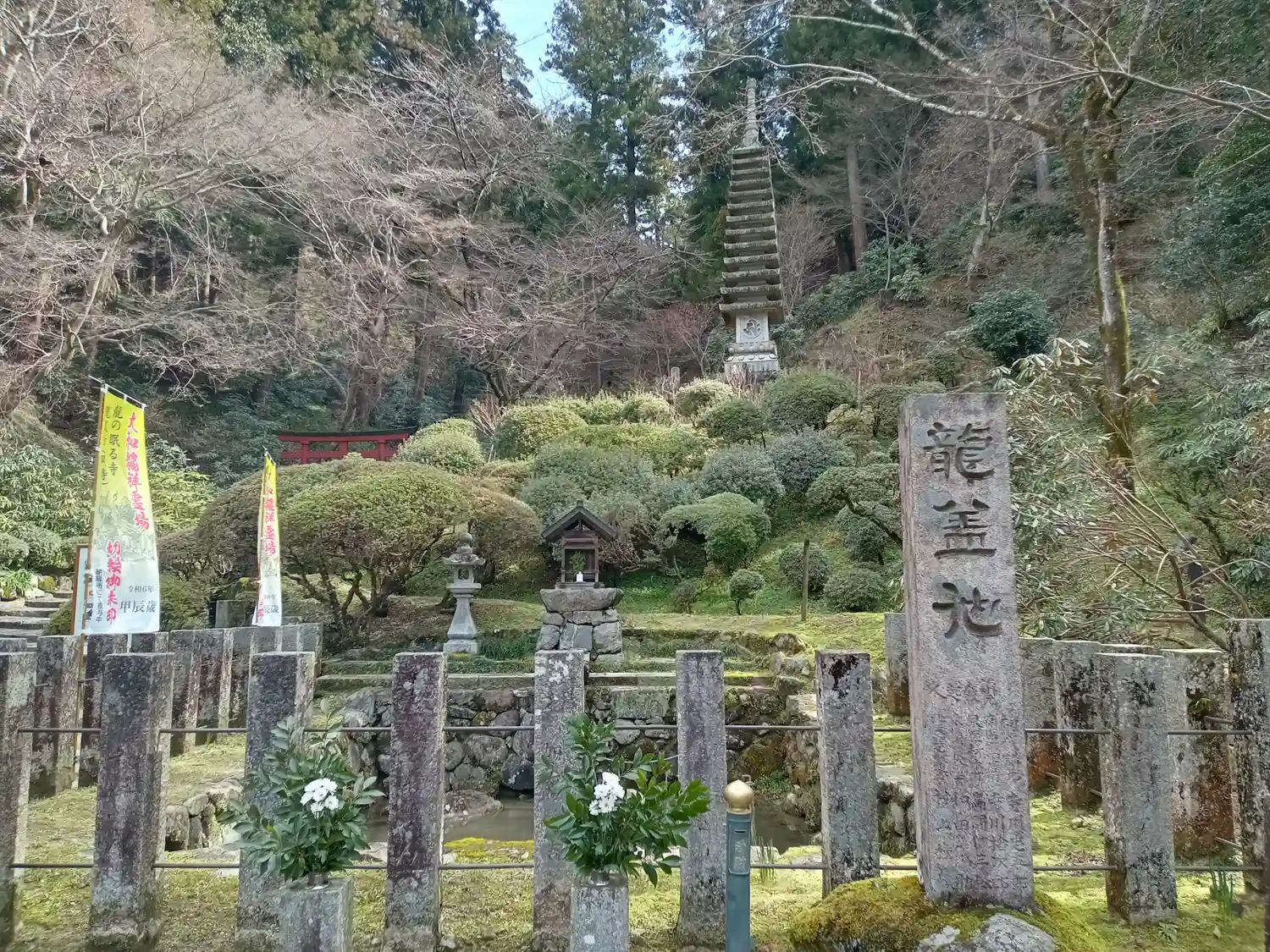 日本最初やくよけ霊場。悪さをする龍をこの地の池に封じ、石で…