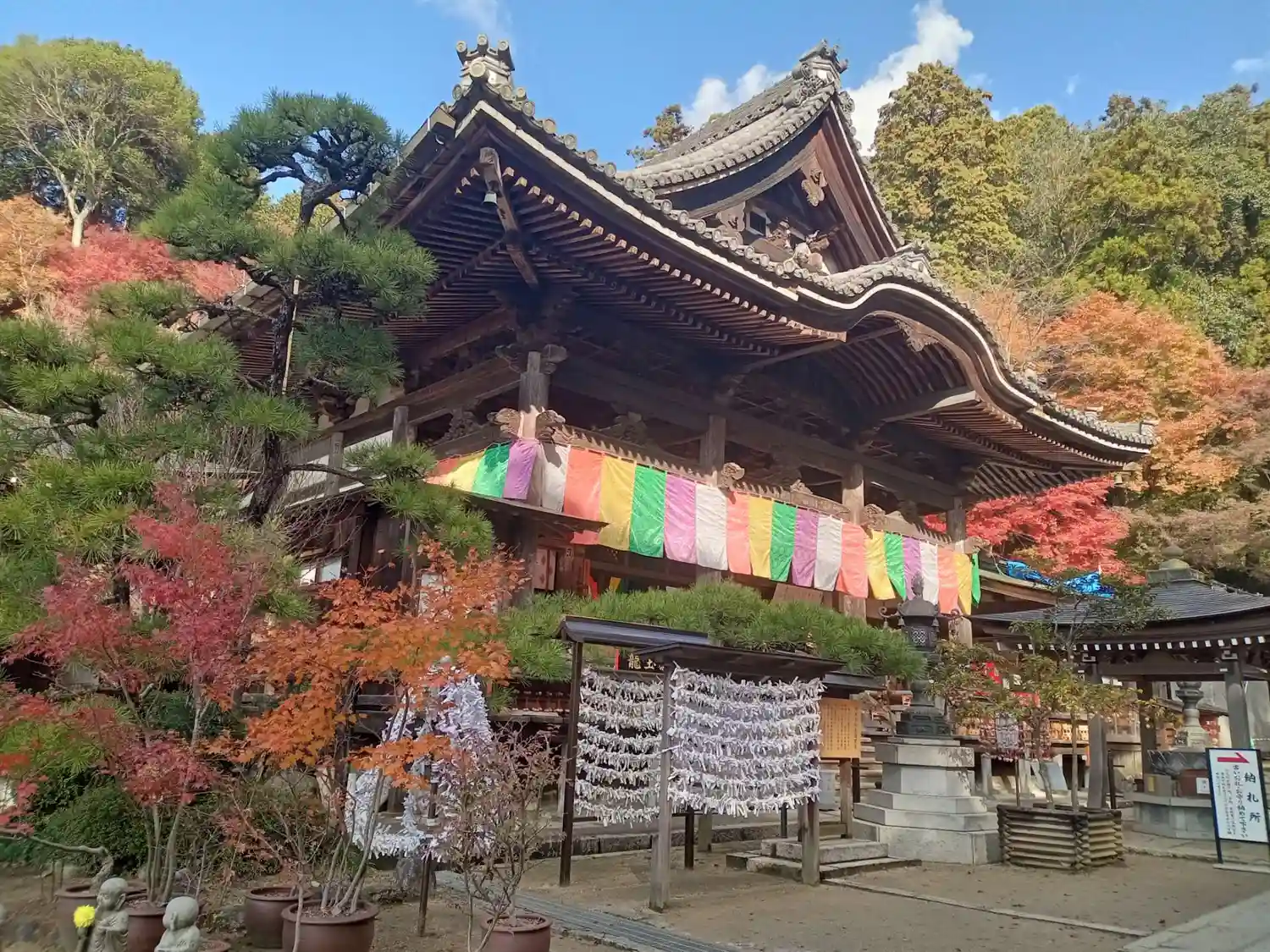 高台にある三重塔や奥之院の洞窟にある弥勒菩薩が