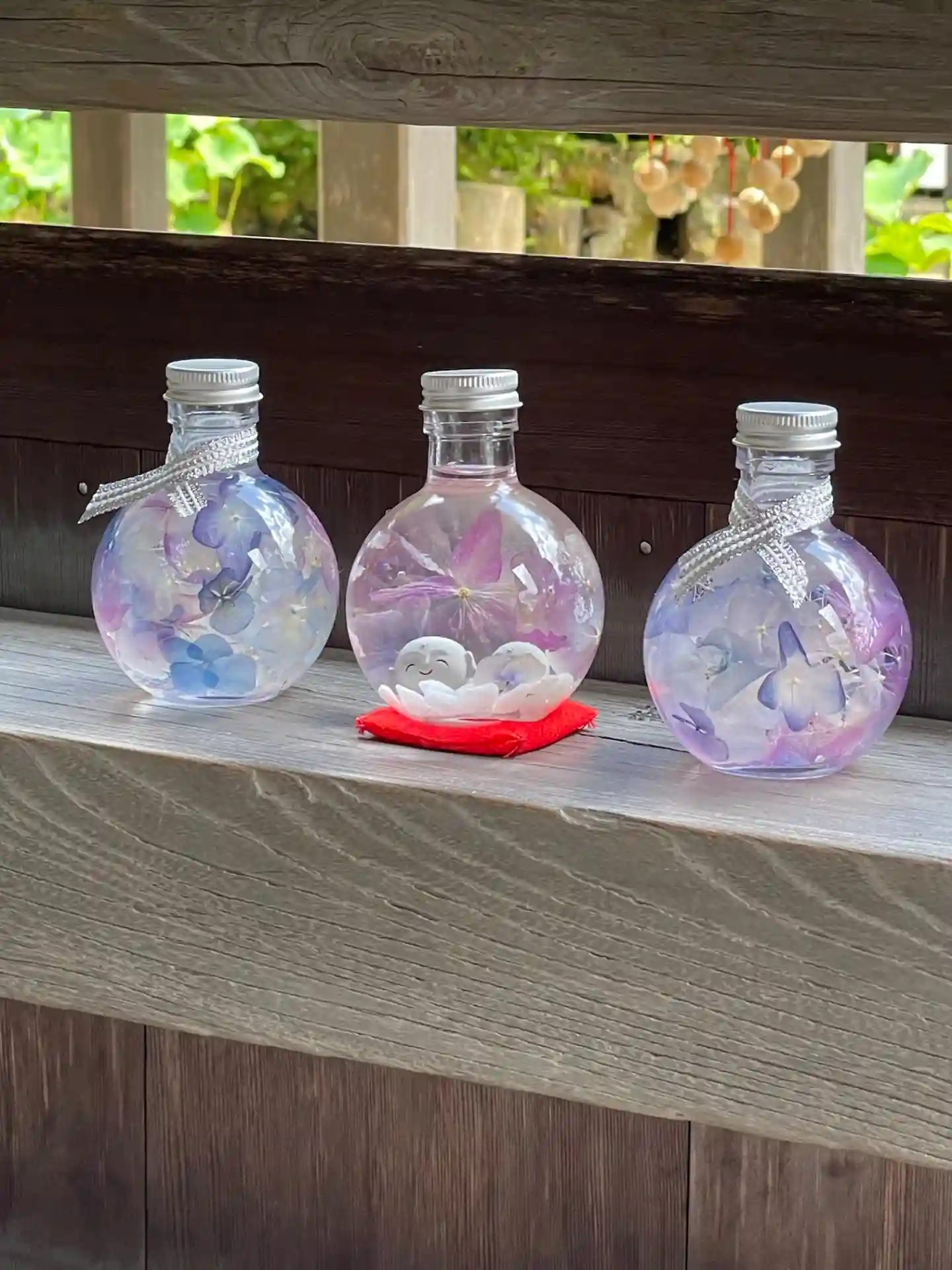 花手水や境内のデコレーションが涼しげであった。