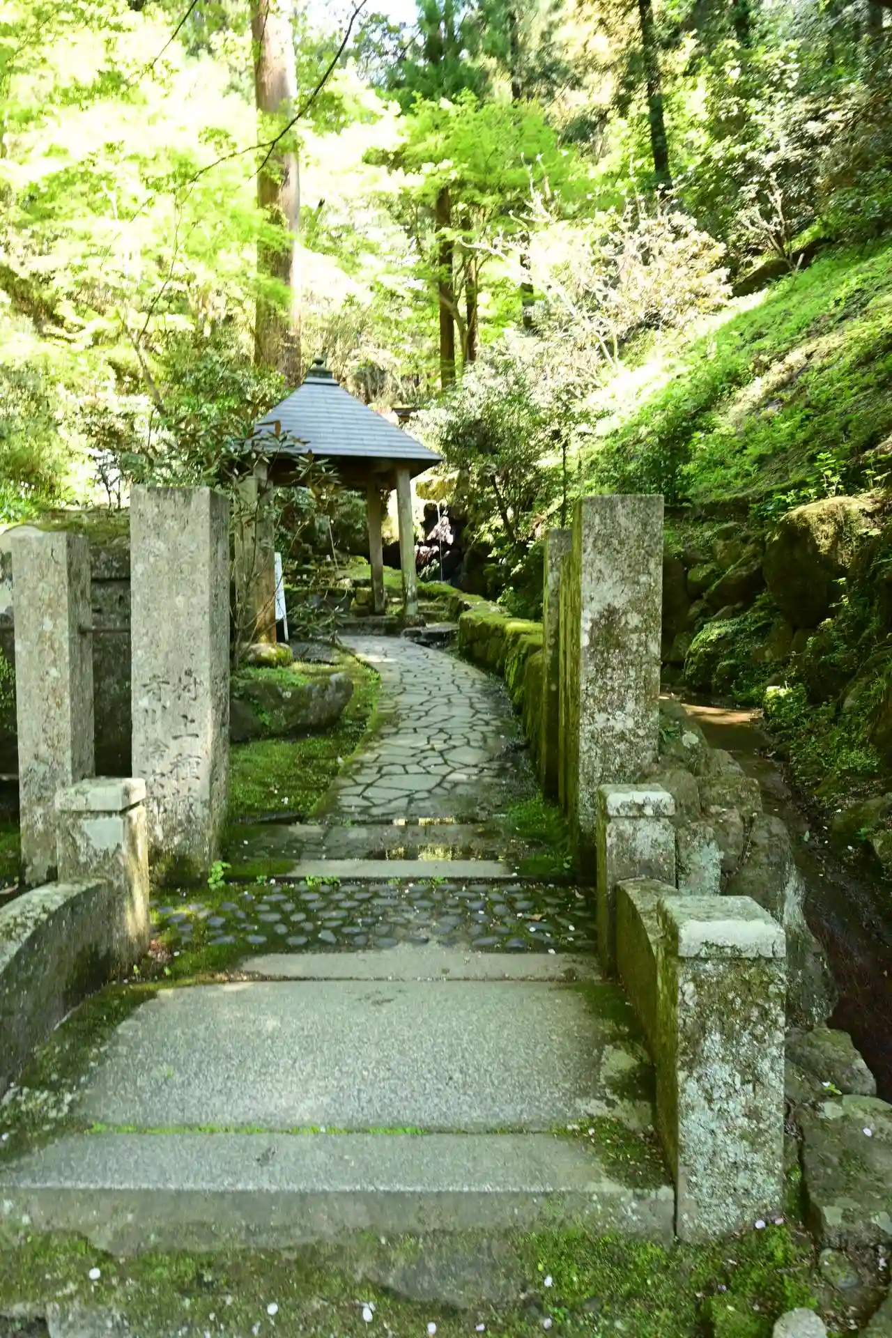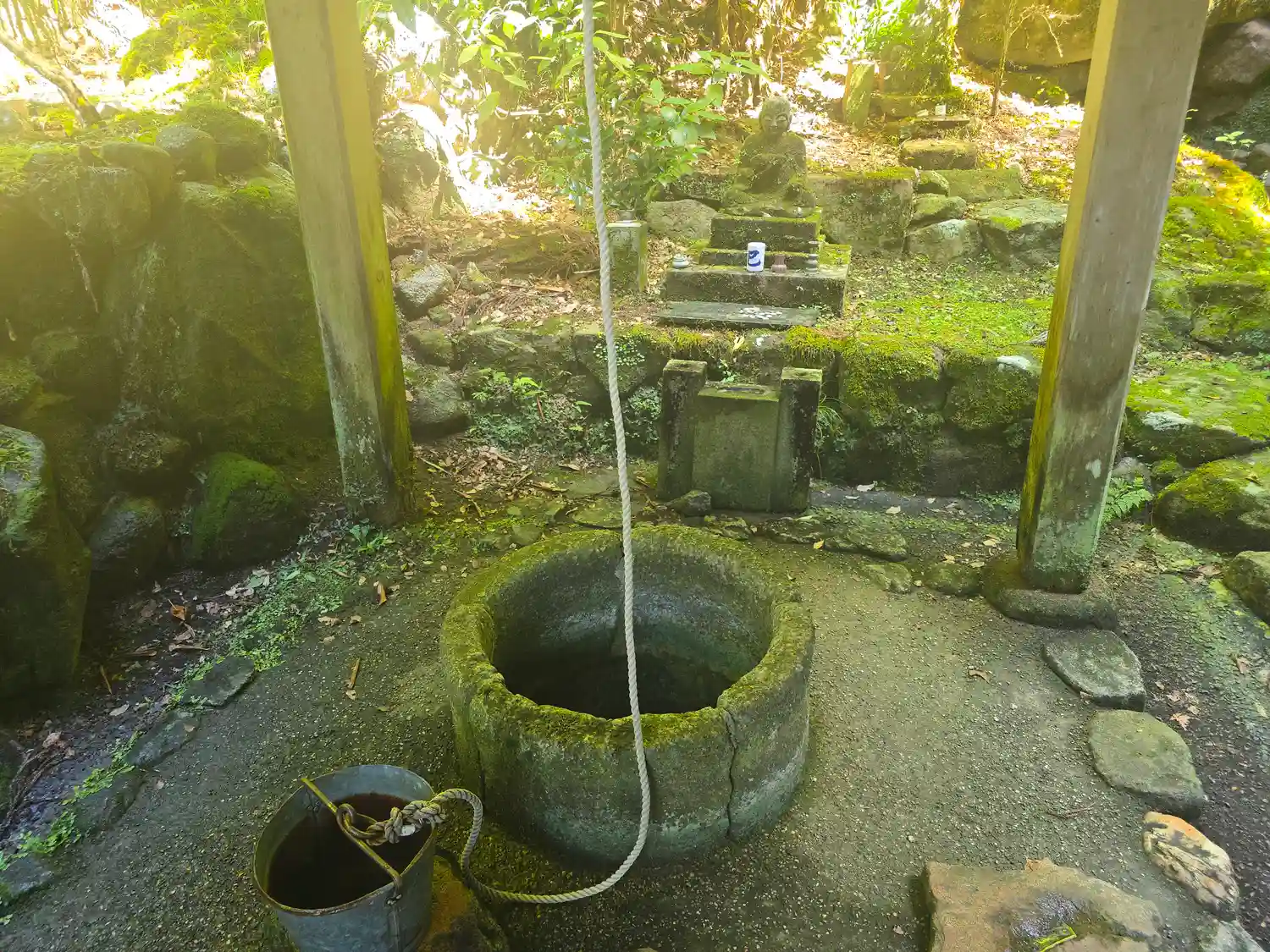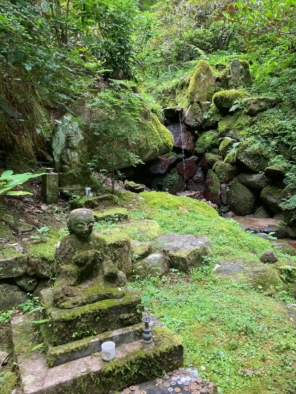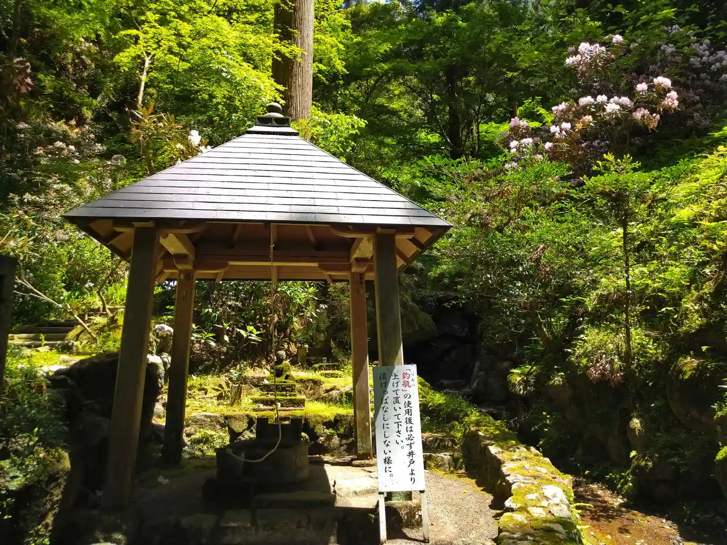 御詠歌【けさ見れば つゆ岡寺の 庭の苔 さながら瑠璃の 光なりけり】