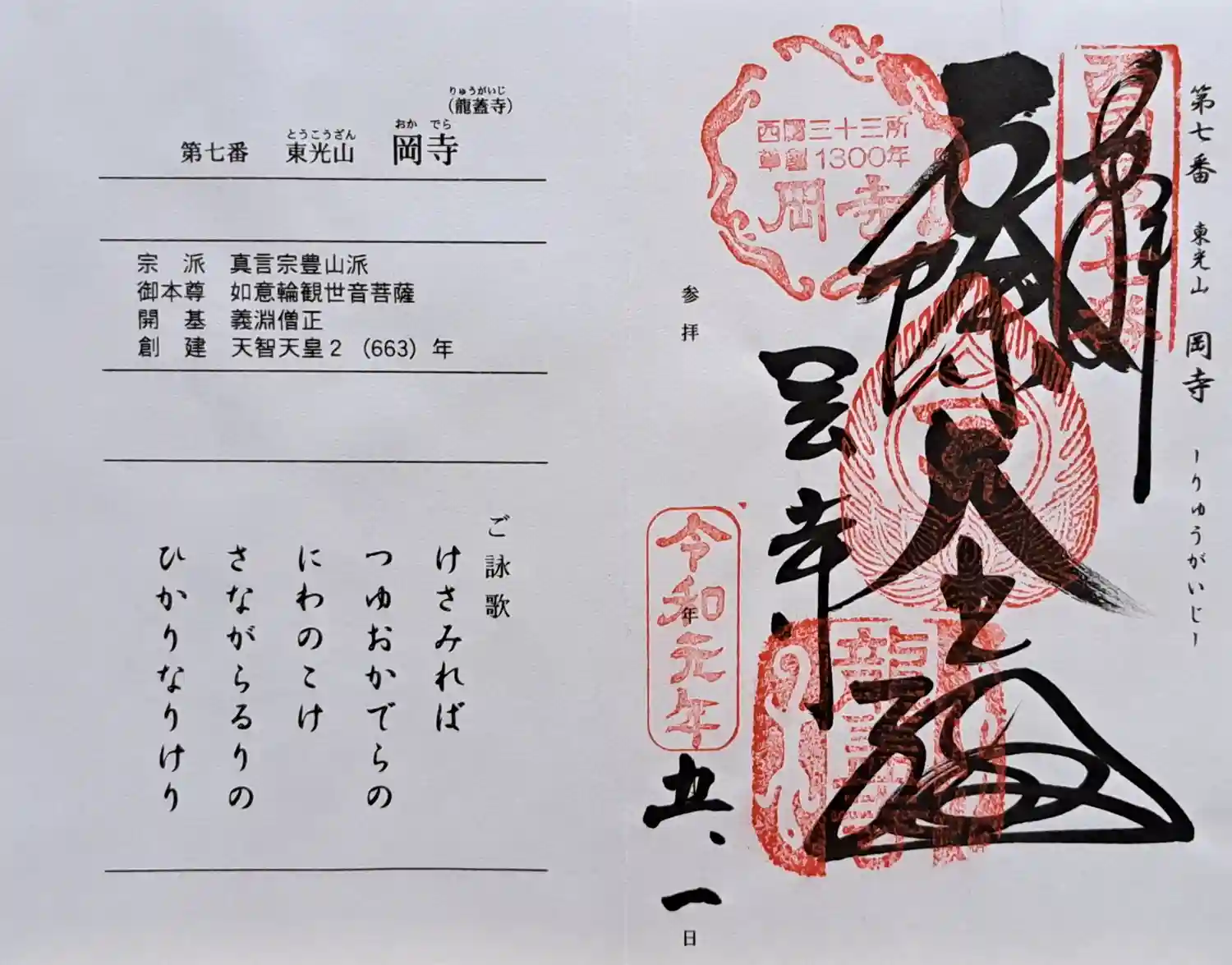 岡寺(龍蓋寺) 西国三十三霊場 重ね印