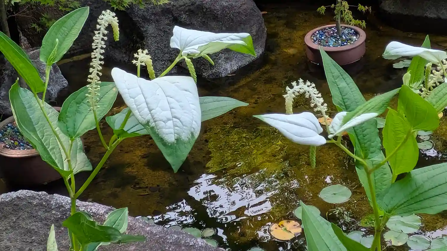 池が花いかだで…