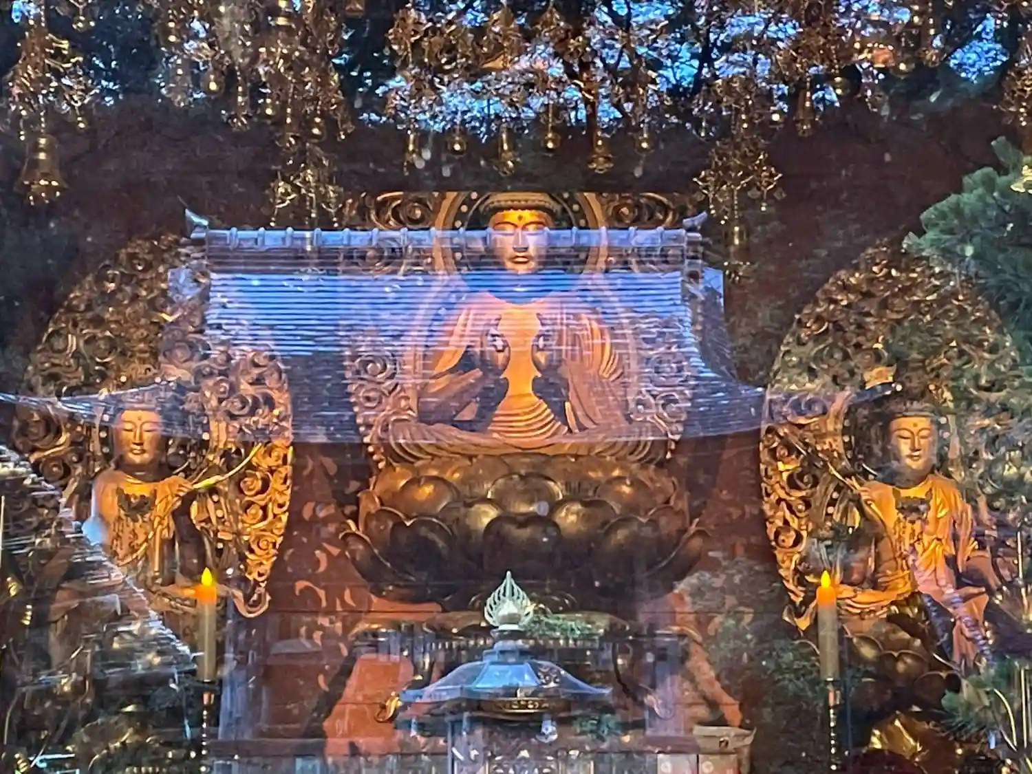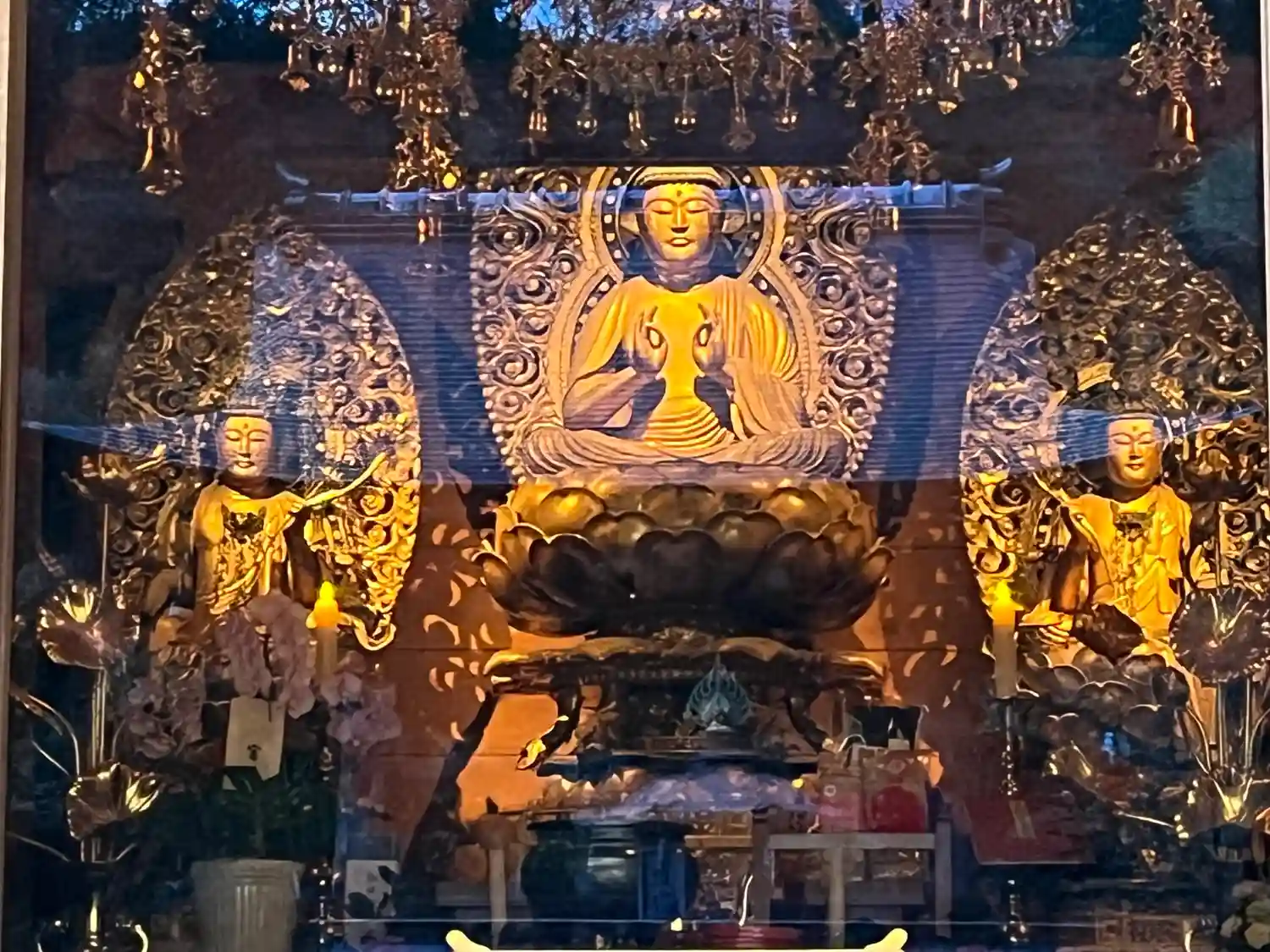 ロウソク、線香、納め札を納め、内陣に入らせていただ…