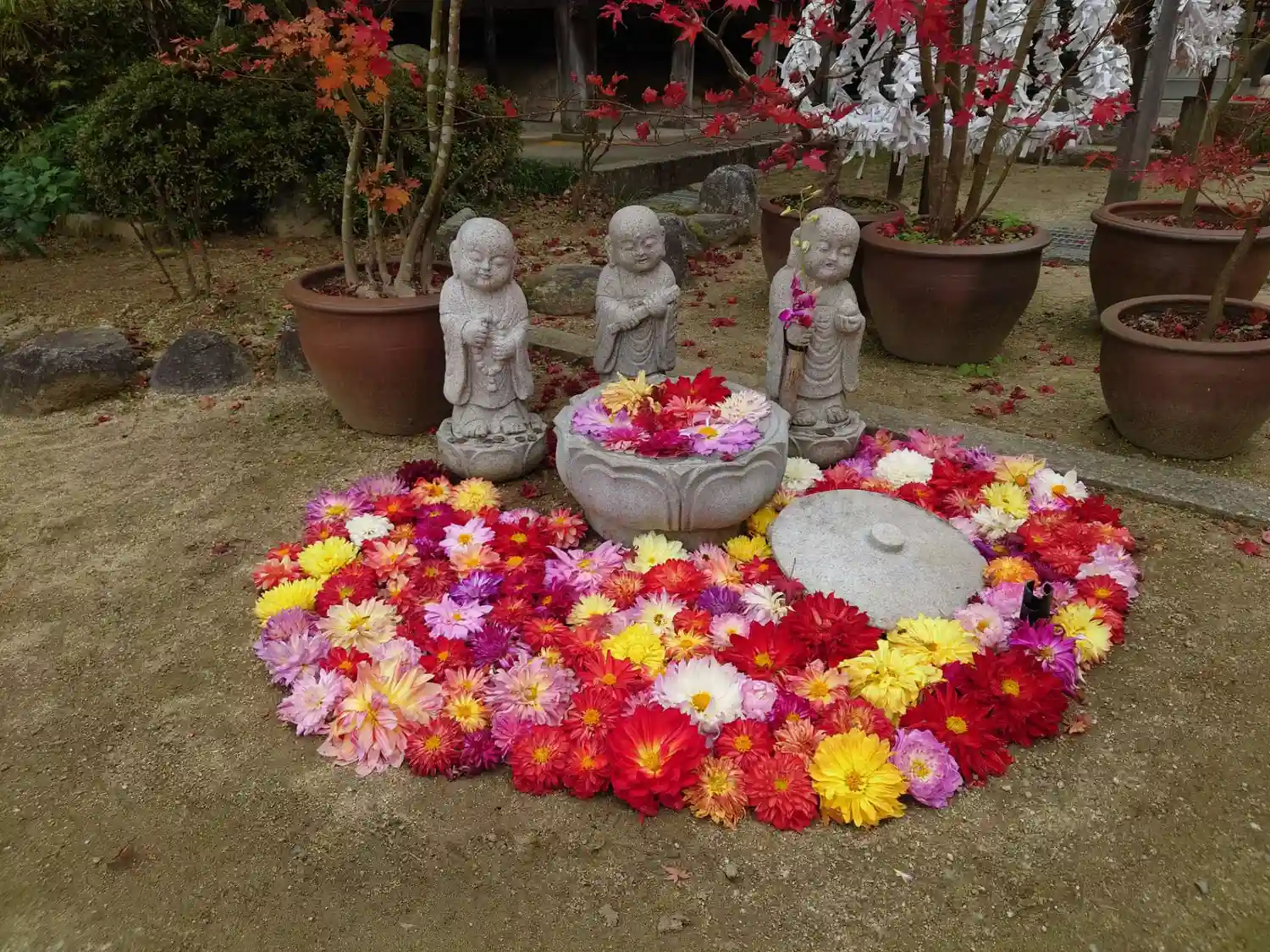 花の寺。一年を通した様々な花が咲きます。