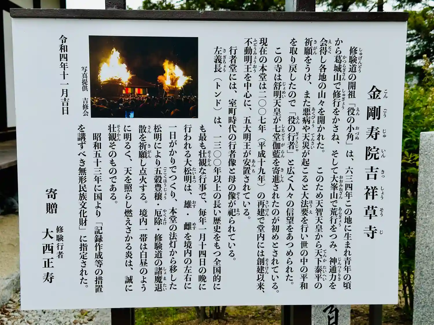 「採燈大護摩供」が行われる地🙏😲 ヒノキの葉に、上からも下からも火をつけて、護摩のときに護摩木(ごまぎ)に添えて,施主や参列者の祈願を記した木を焼くらしいです🥹🙏