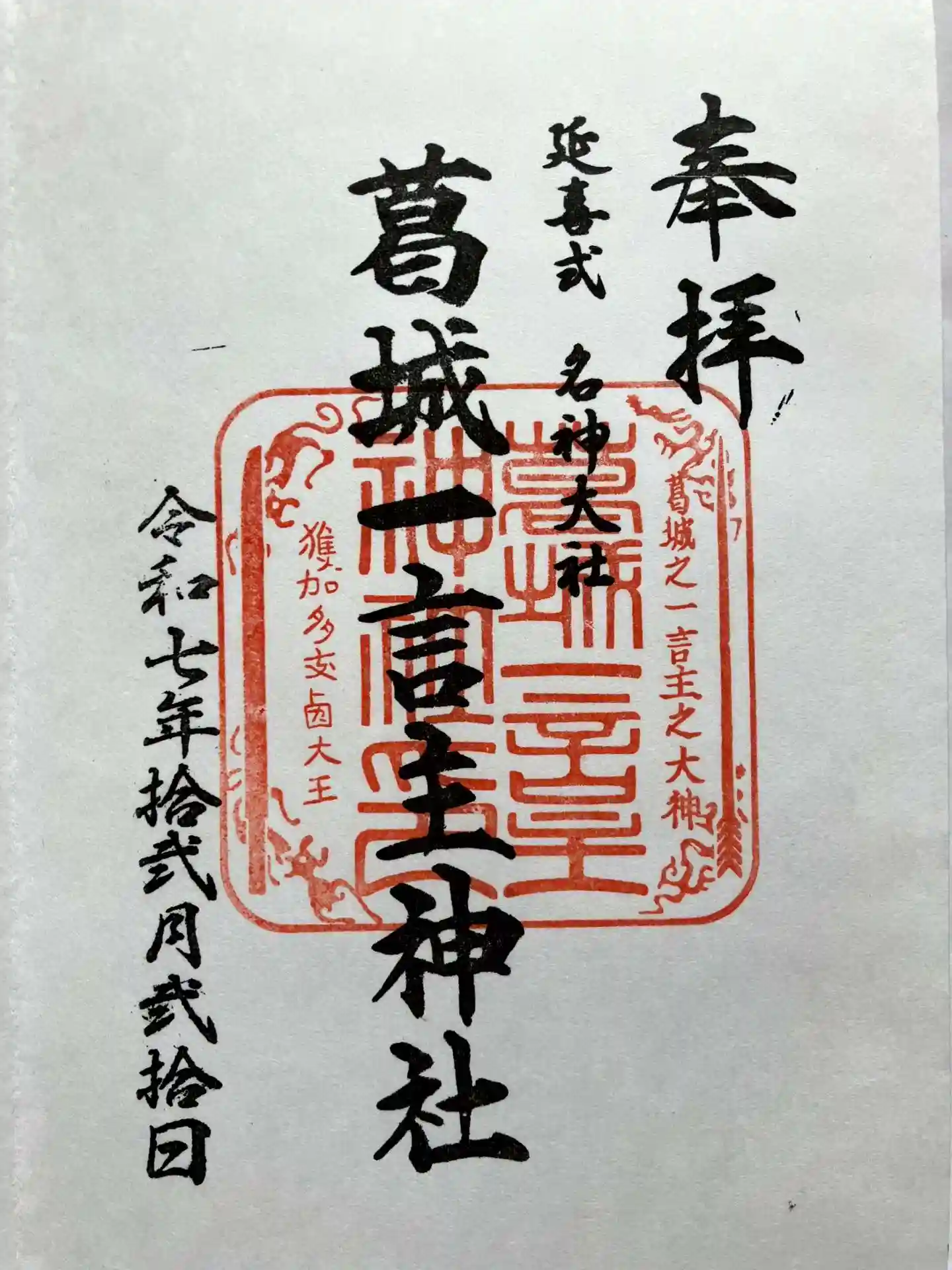 葛城一言主神社の御朱印