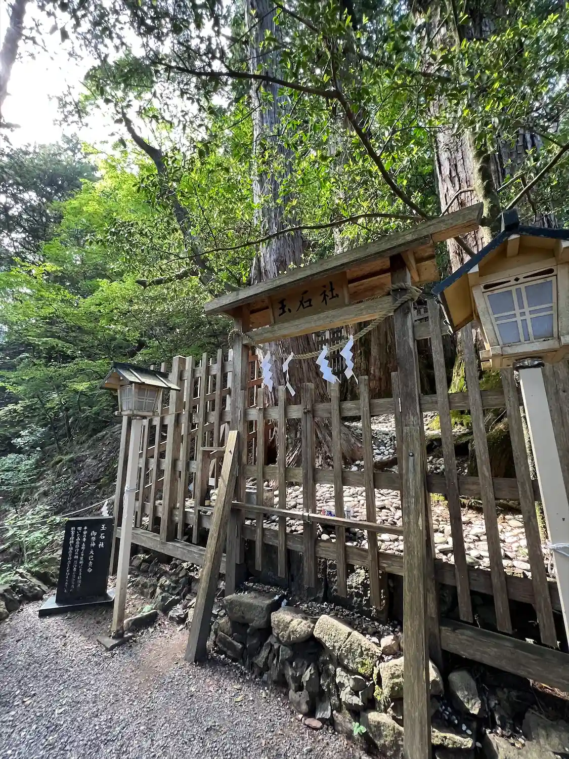 山頂までは徒歩20分。その途中に玉石社があるのだが、山頂へ向かう道の鳥居をくぐったら、次は喉を圧迫され呼吸がしにくい状態になり、水の中に沈んでるかのように体が動かず、助けを求めようにも他に参拝者に会うこともなく、『あぁー死ぬ』っとまで思う程。
