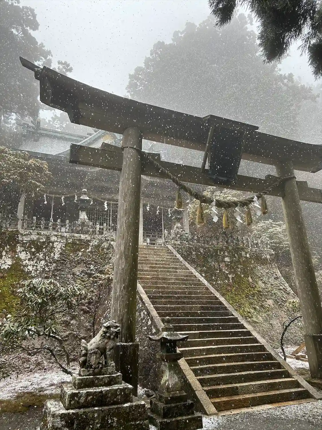 道中は雨だったのですが、境内のみ雪が降っており不思議な感覚でした。