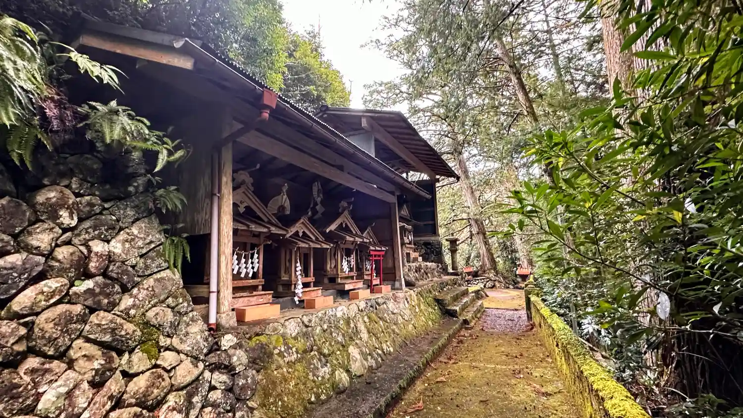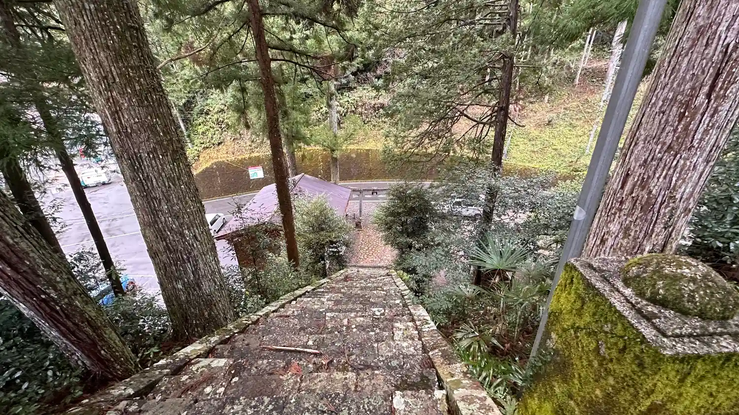 湯泉地温泉のすぐ近く、十津川村役場の川向うに鎮座されています。鳥居を抜けると急階段が待っています、…