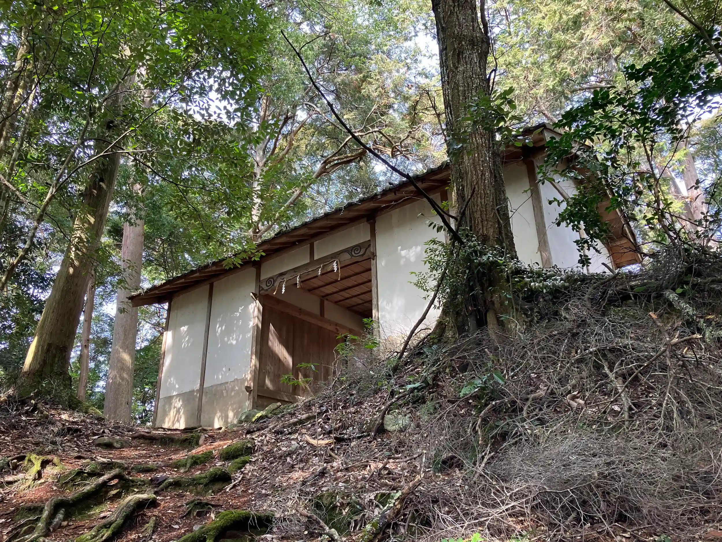 ここから集落の裏山を登っていくと壊れた鳥居が見えてくる。そこをくぐりさらに山を登った先に社殿がある。