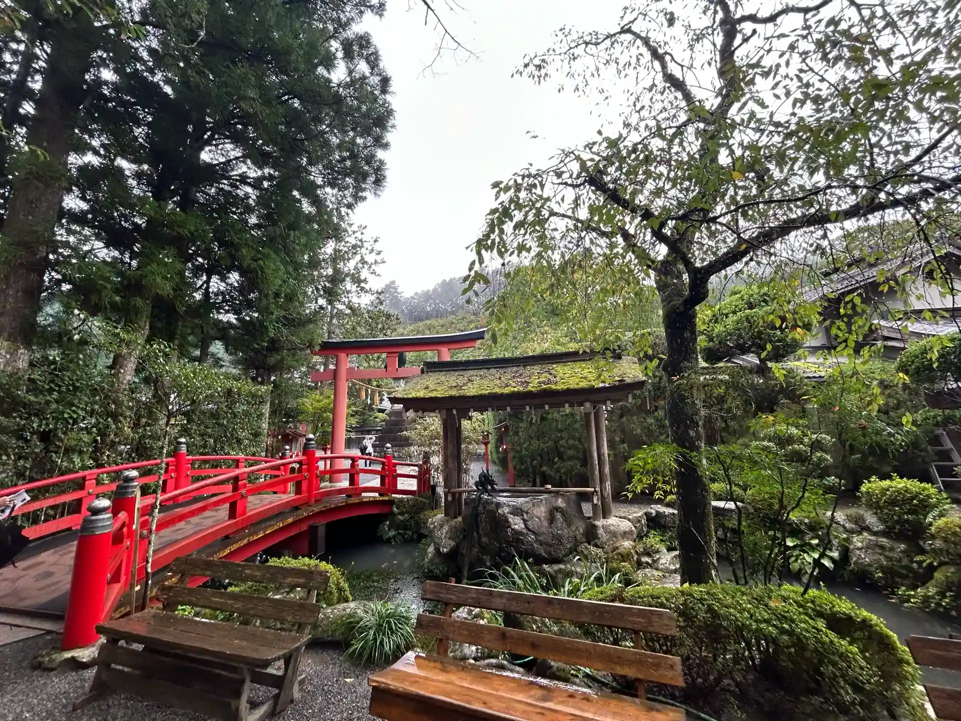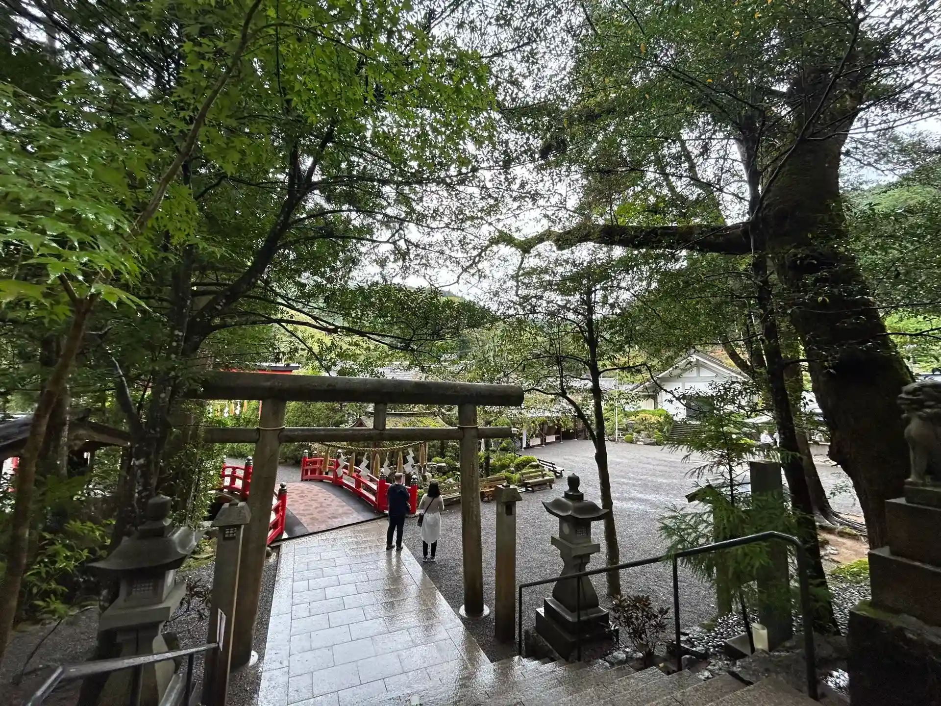 早朝で雨上がりも相まって、神社全体の雰囲気がとても神秘的で魅入られる感じがしました。