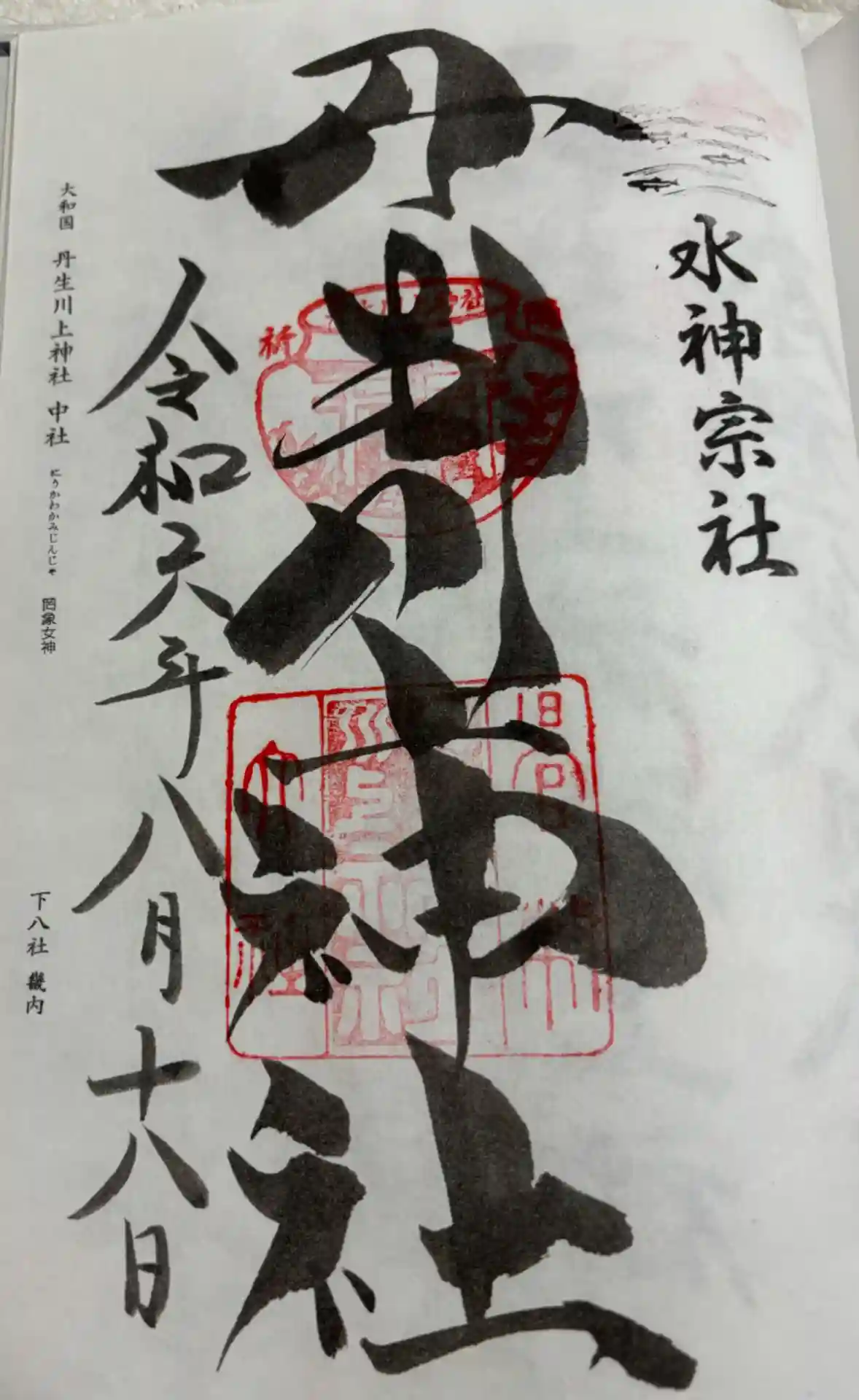 丹生川上神社の御朱印です。中社の記載はありません。水神の文字。