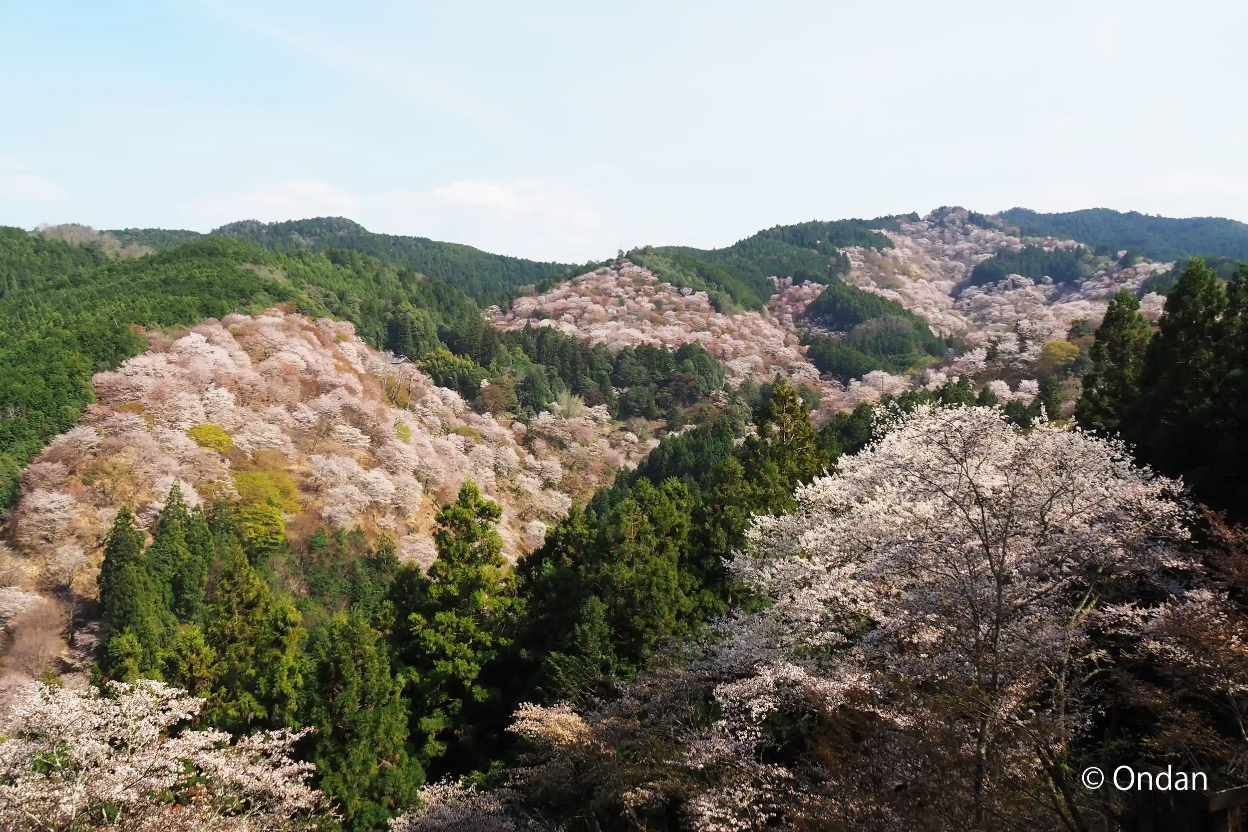 金峯山寺からすぐで、東南院の向かいです。秀吉公の一目千本で有名ですが、ものすごい賑わってました。一目千本は入山料を払って境内に入らないと見えません。天気もよかったので、息を呑むような桜が見れました。