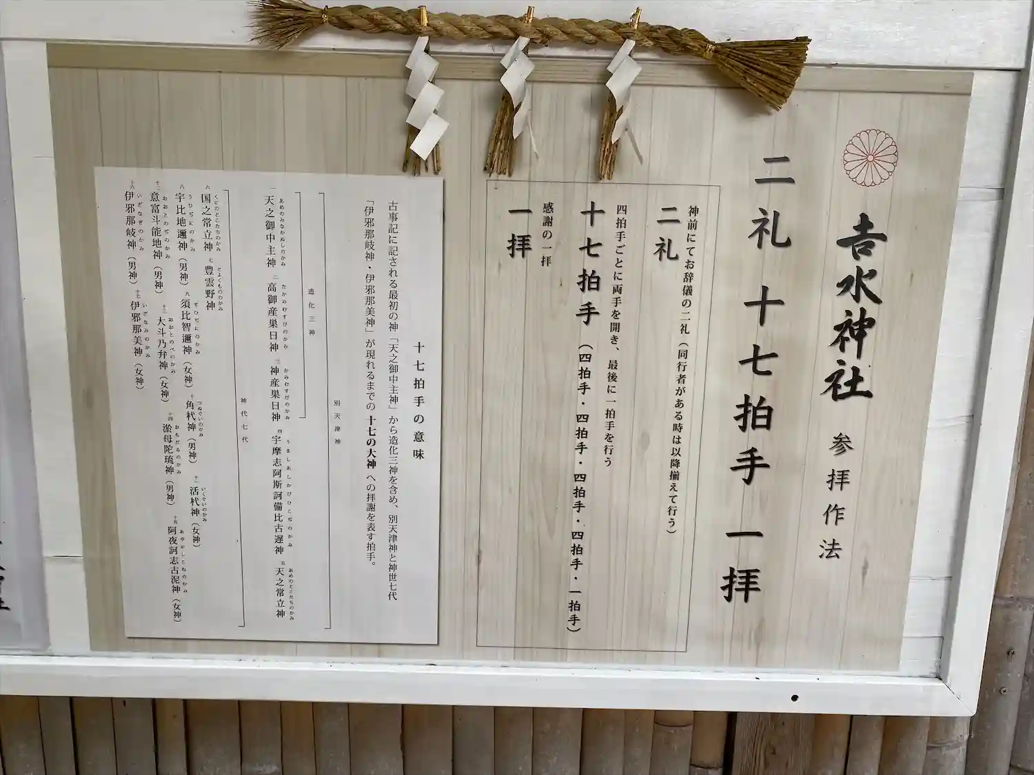 吉水神社の参拝方法が、二礼、十七拍手、一拝でちょっと戸惑いました。