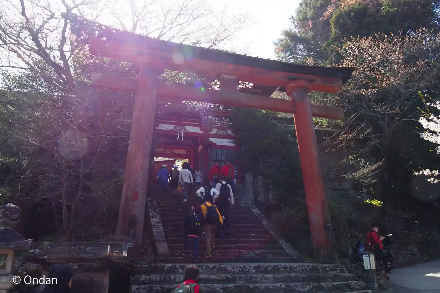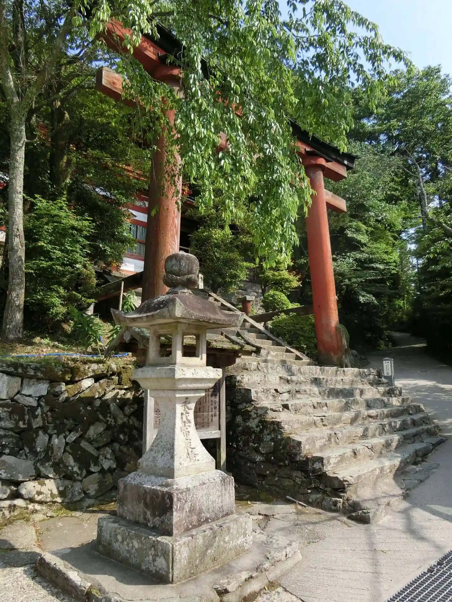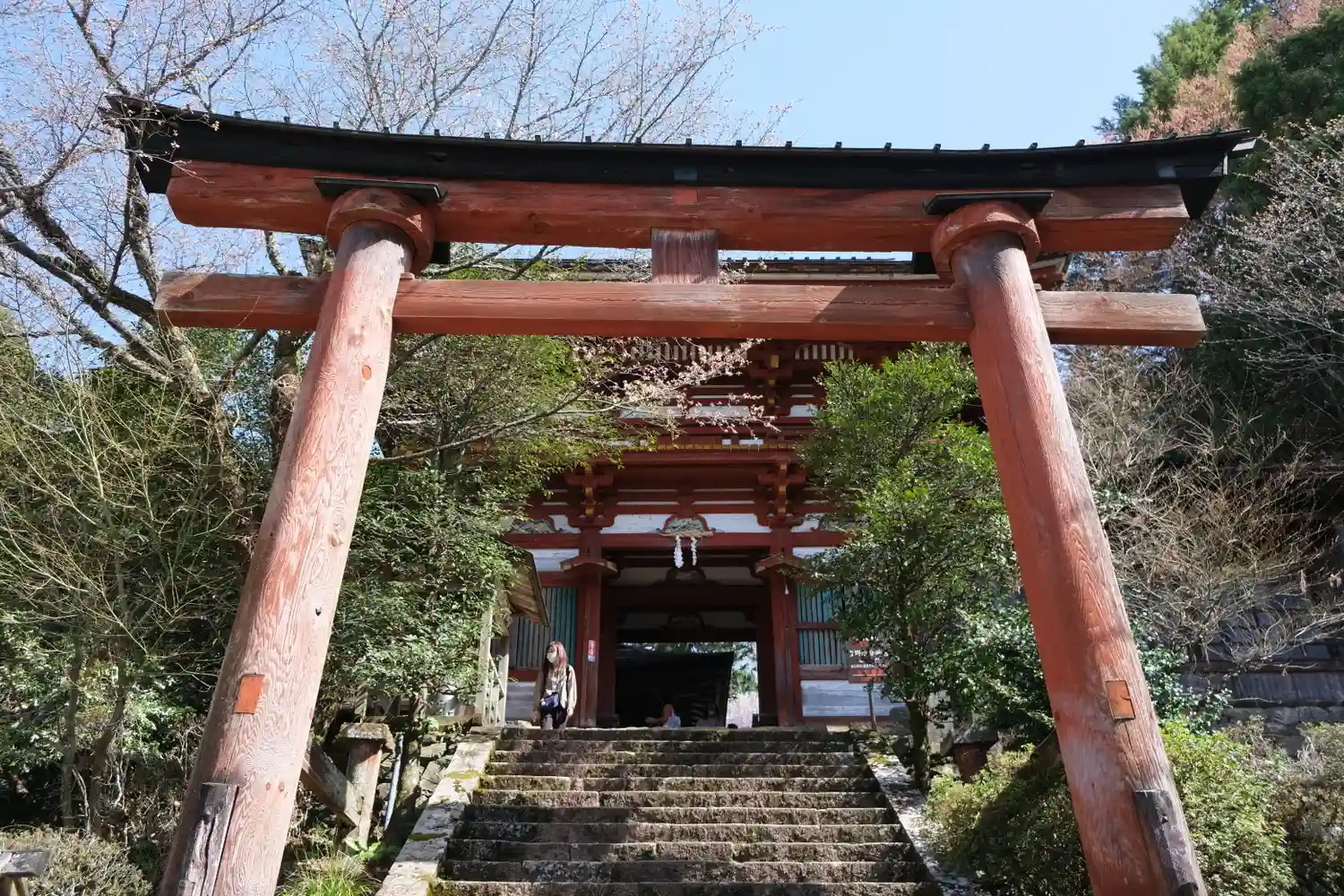 金峯神社からひたすら下る。うっかり転んだら惨事になりそうな急坂。かなり足腰に堪えます。鳥居から楼門…