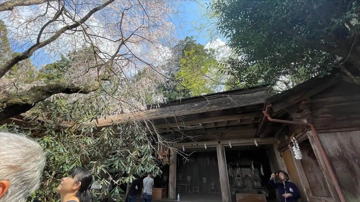 桜の木の向こう側、人が並んでいる所が本殿。ここで参拝です。