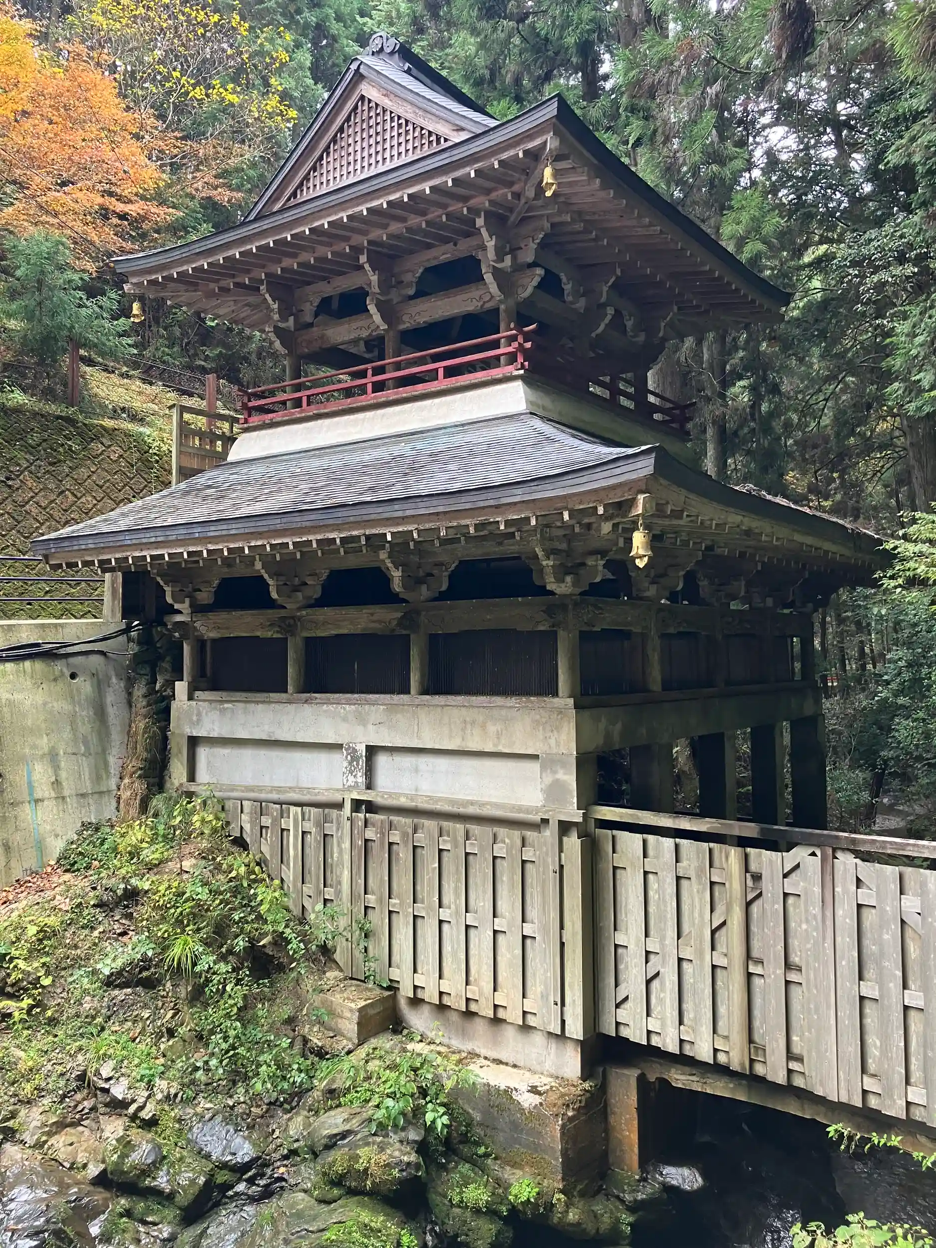 金峯山寺から約500段の階段を下った先に建つ。