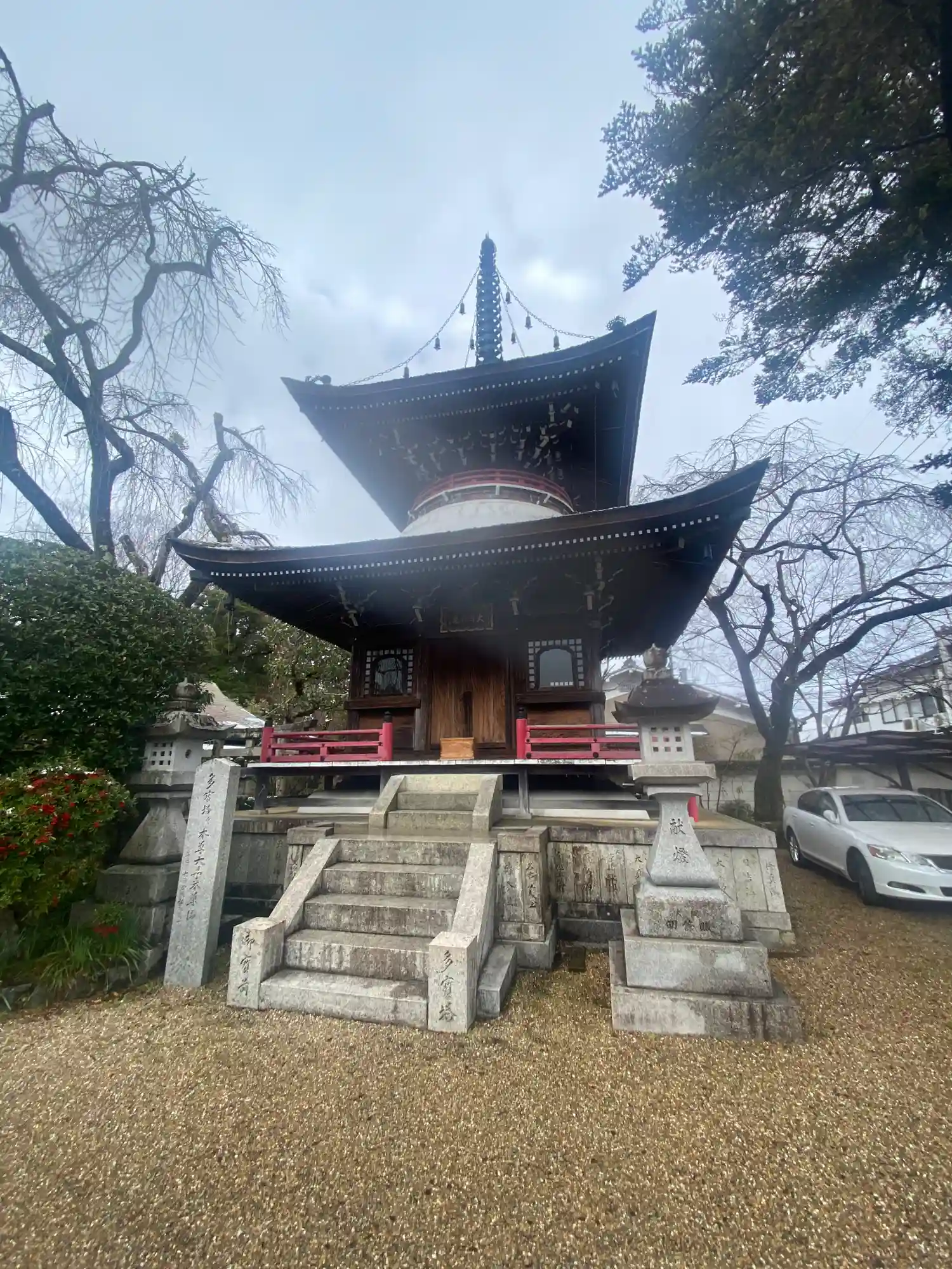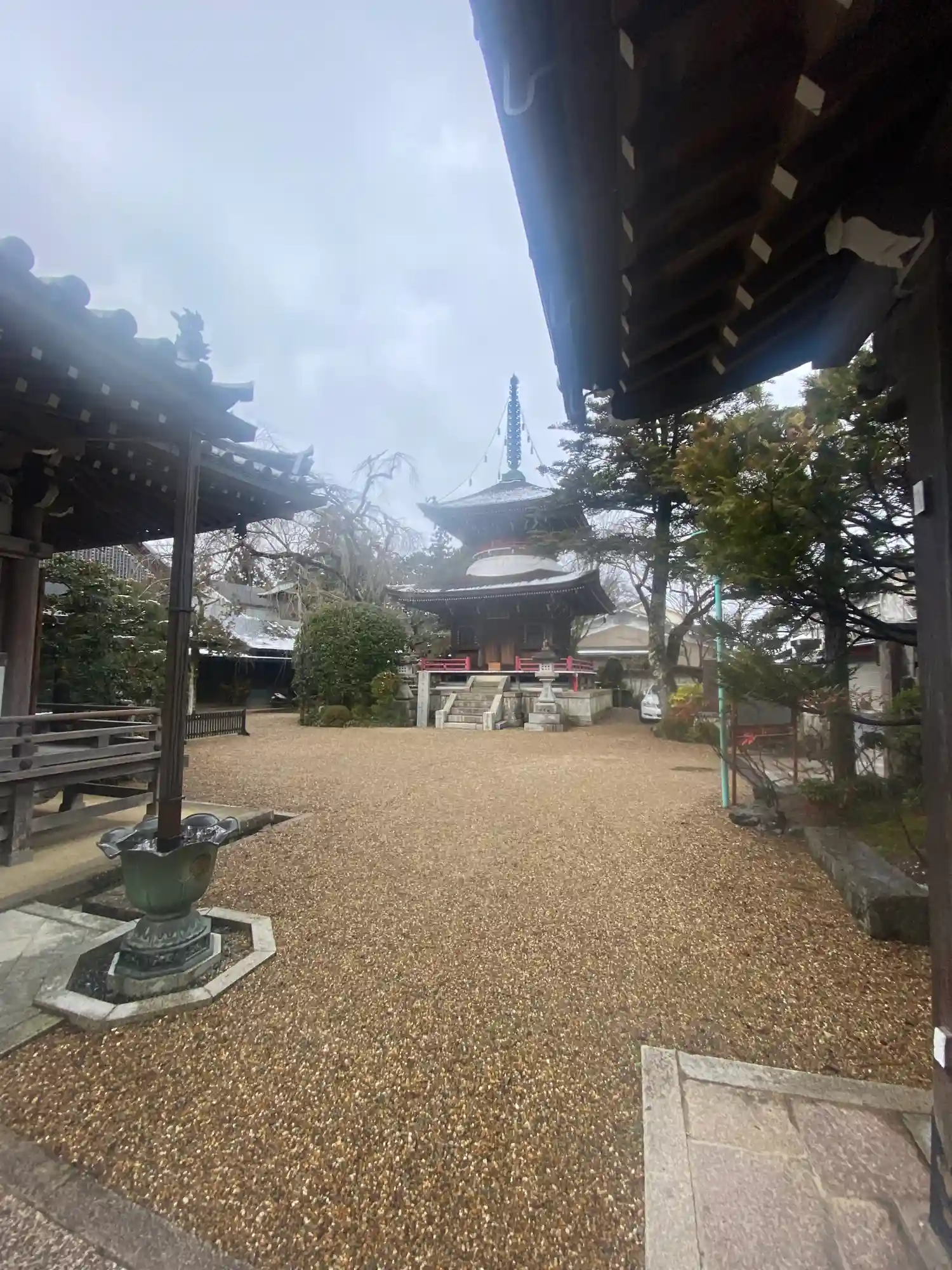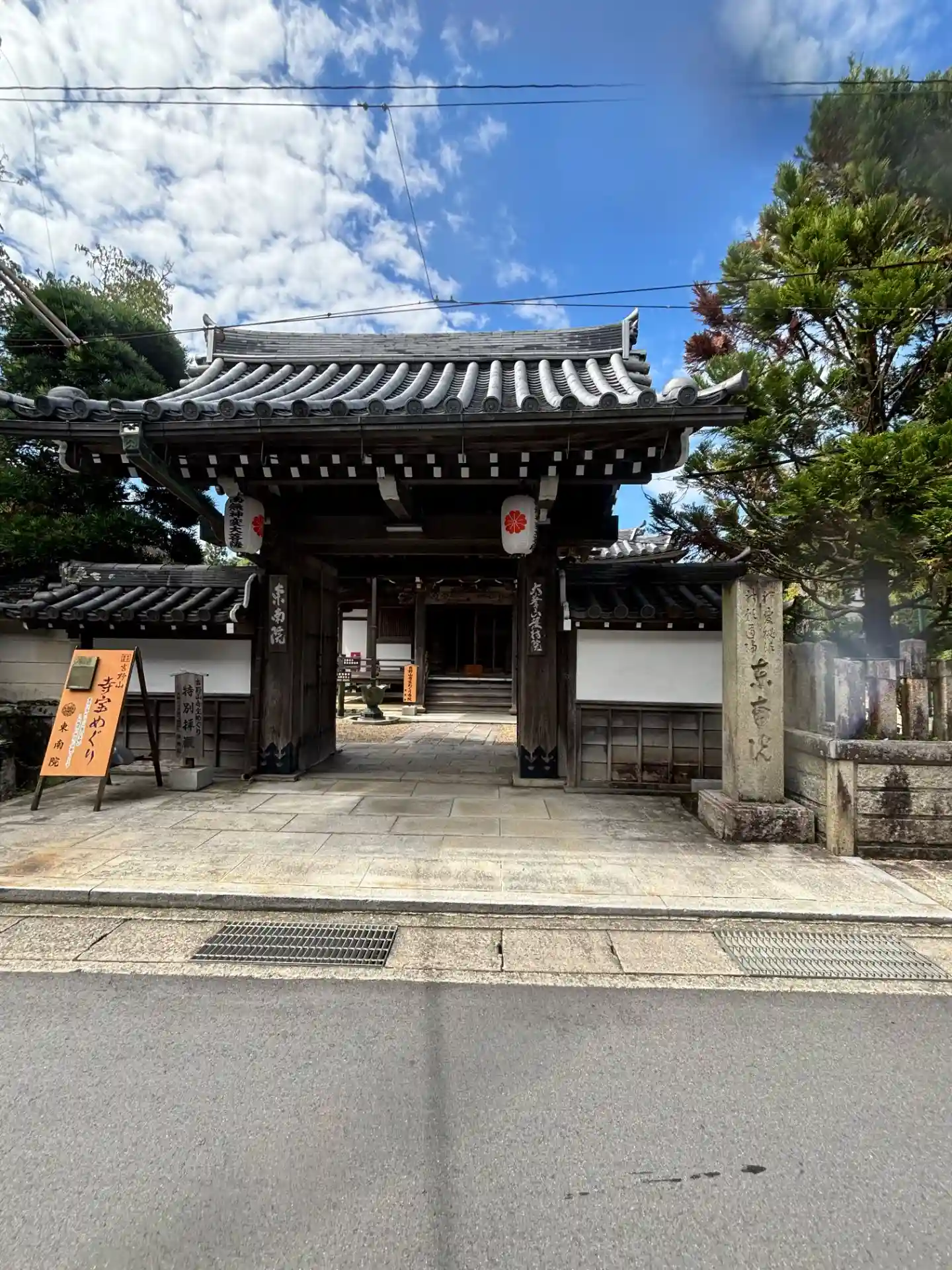 通りから多宝塔が見えるお寺で、役小角が開山したと言われるお寺。