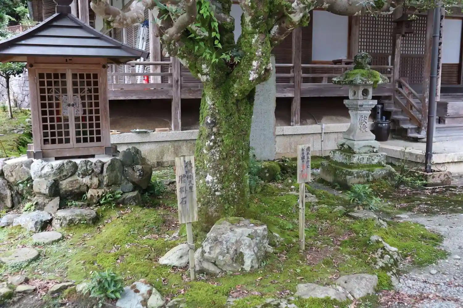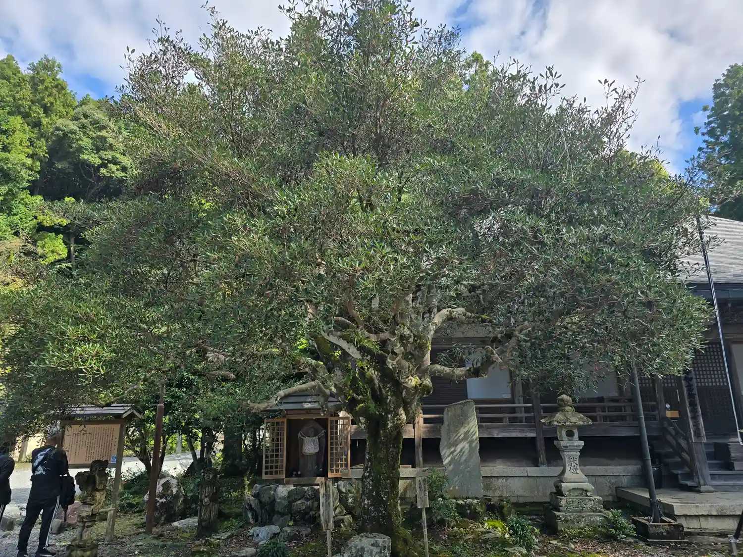 如意輪寺・後醍醐天皇腰掛け石と楠正行公お手植えの木斛