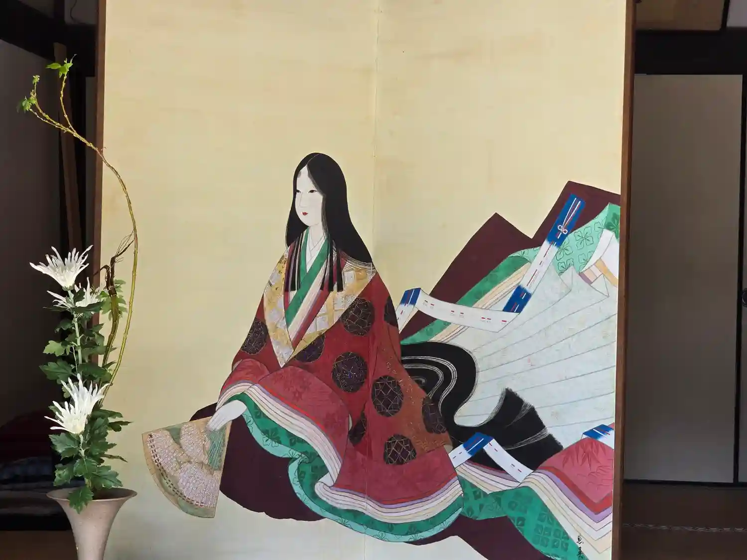 正行が四條畷の合戦で討死したことを知った弁内侍は、深い悲しみに沈みます。しかし正行への追慕の情を絶ち難く、ここ如意輪寺で黒髪を切り、