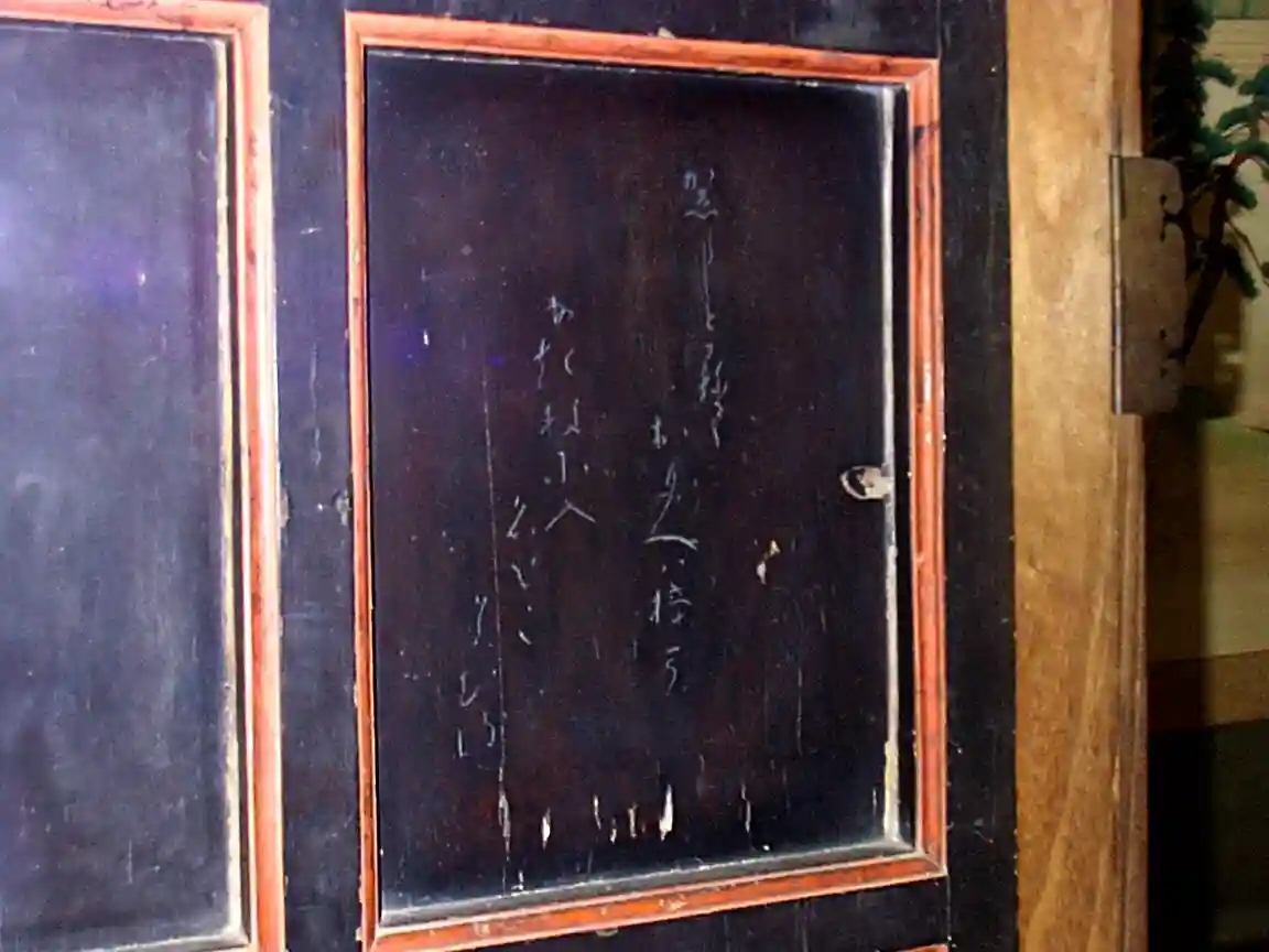 20年ほど前参拝した際、宝蔵庫に小楠公・楠木正行公が鏃で刻んだとされる門扉が保管されていました。