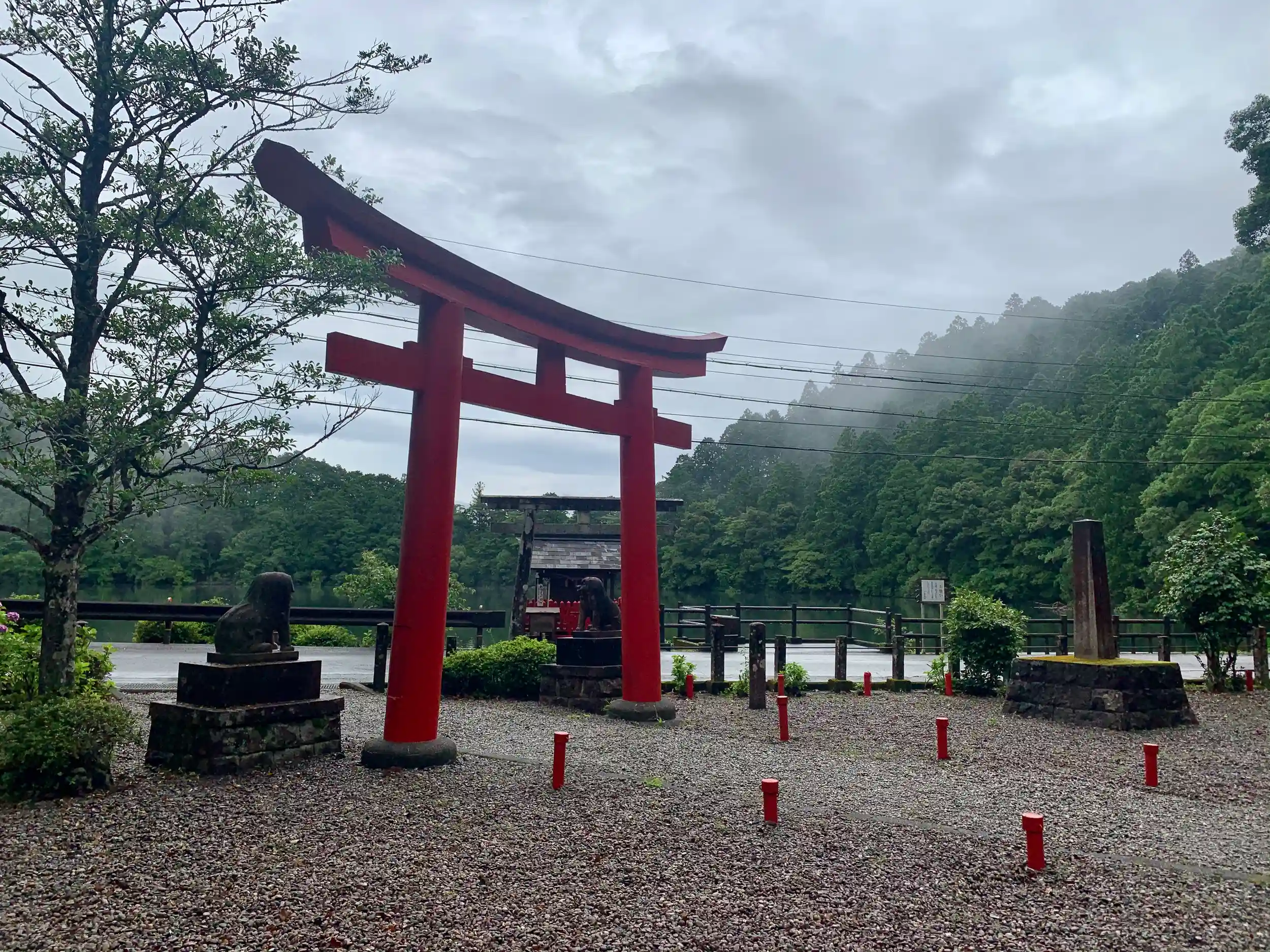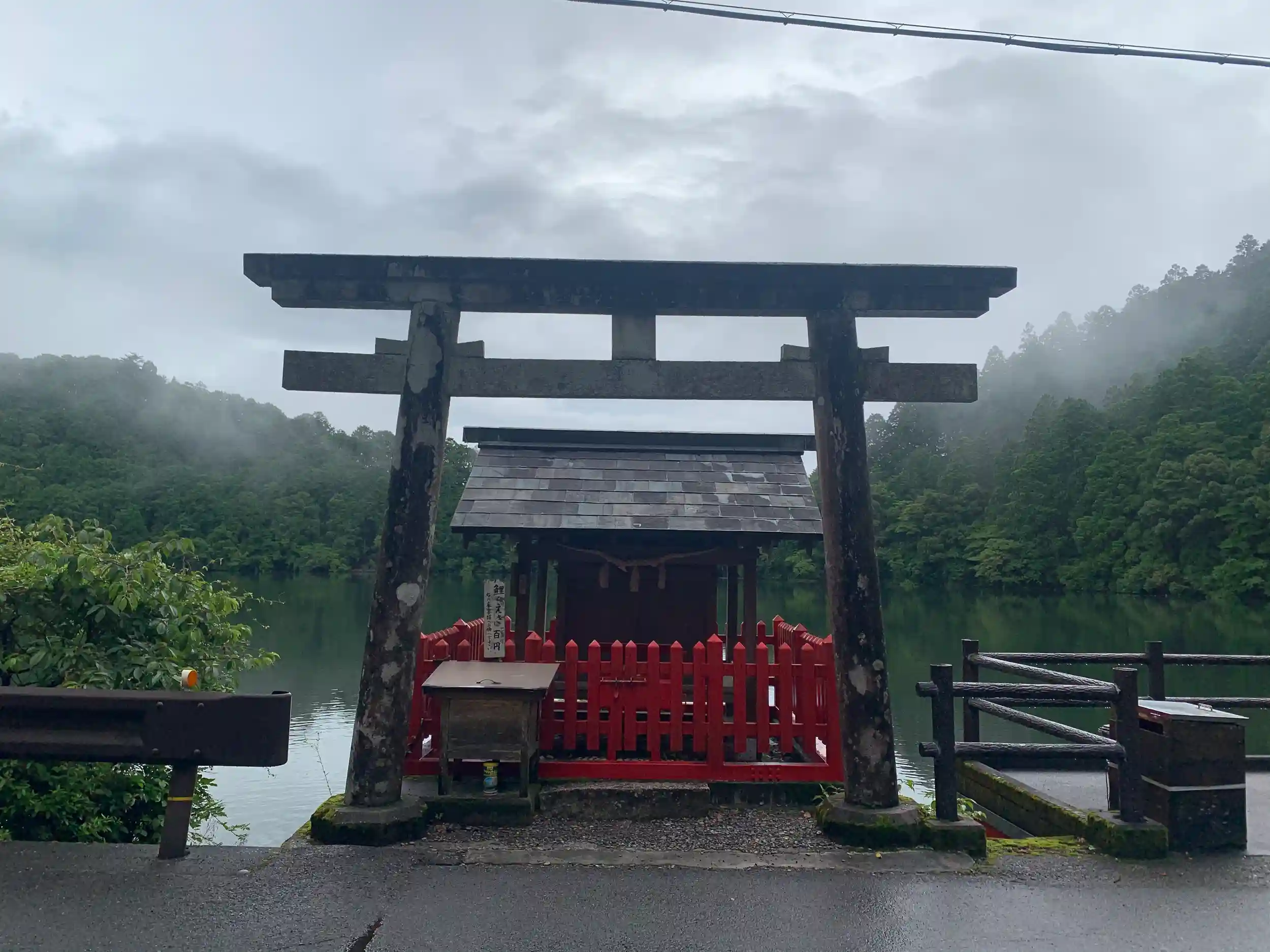 そんなに広くはないが歴史を感じる境内に、木々に囲まれ霧がかかった池が幻想的。気温的には暑い日のはずだが山の中で寒かった。
