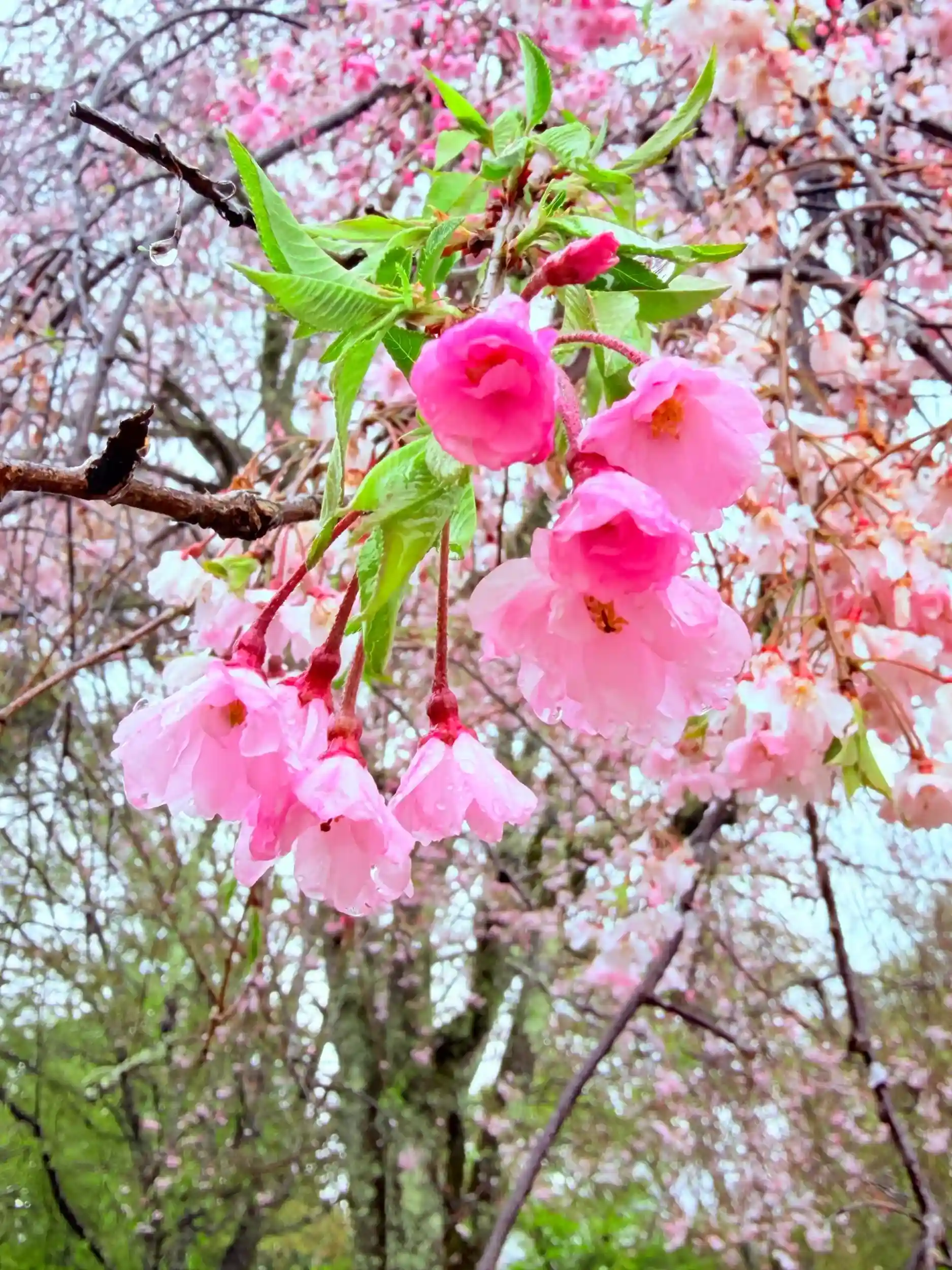 雨の中の枝垂れ桜です🌸