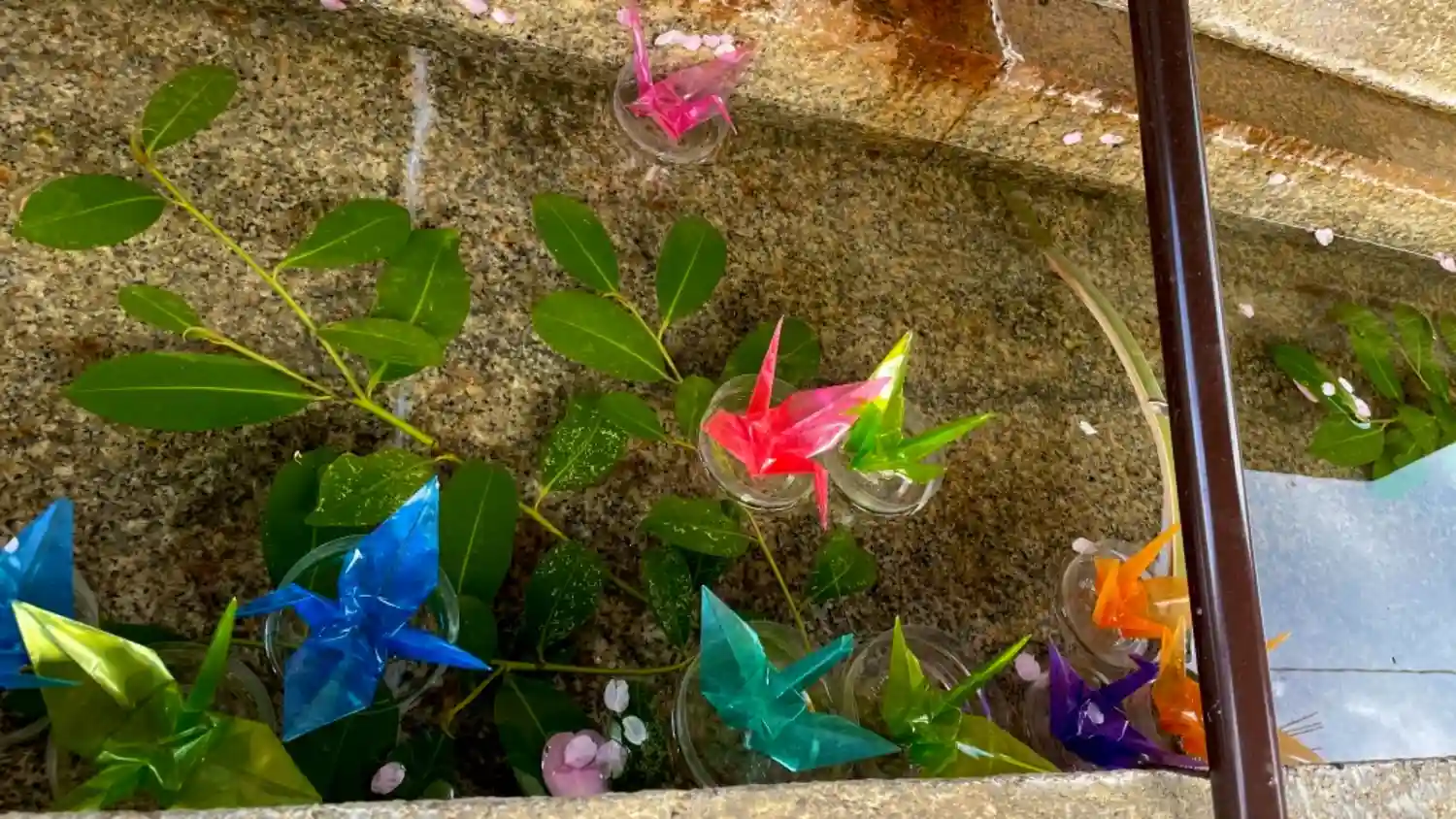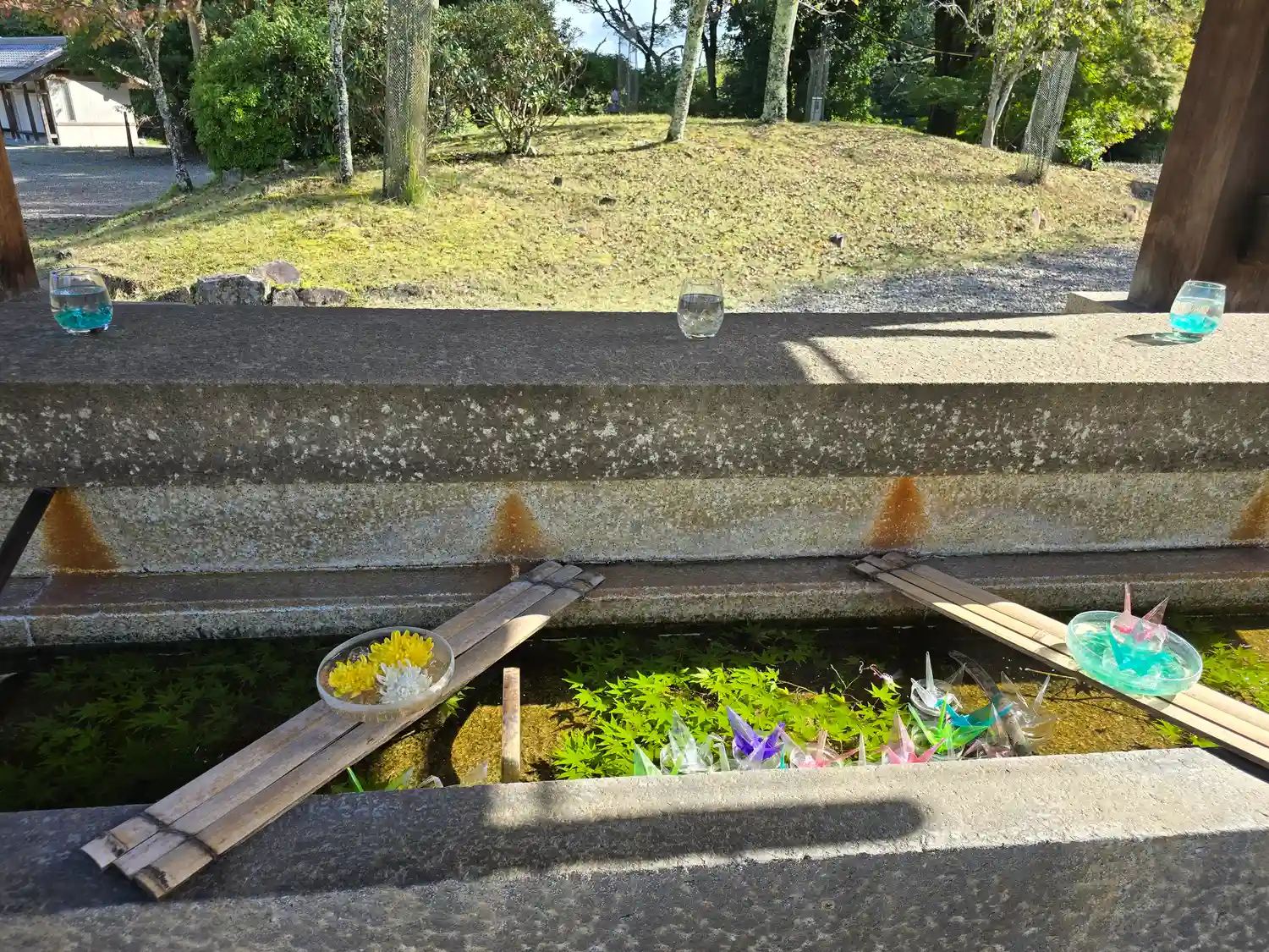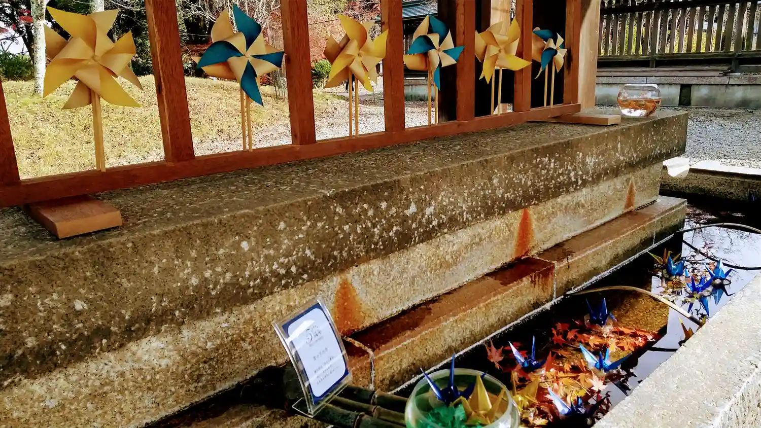 落ち着いた雰囲気で、手水のスケルトンの折り鶴が綺麗だった。
