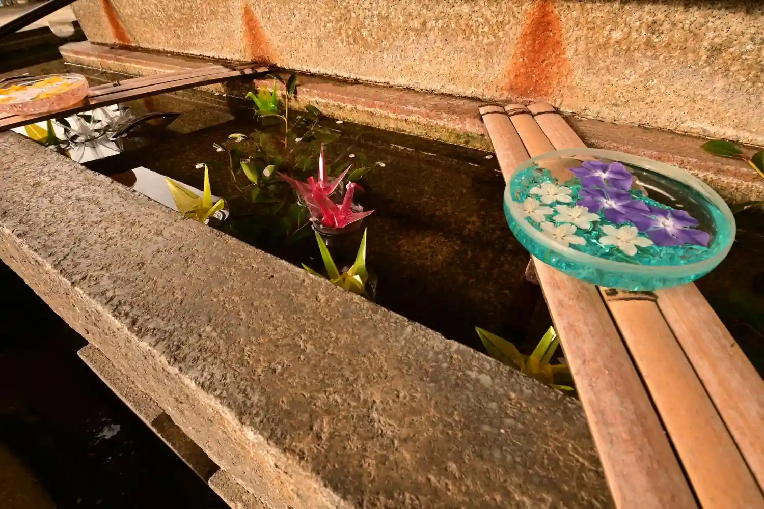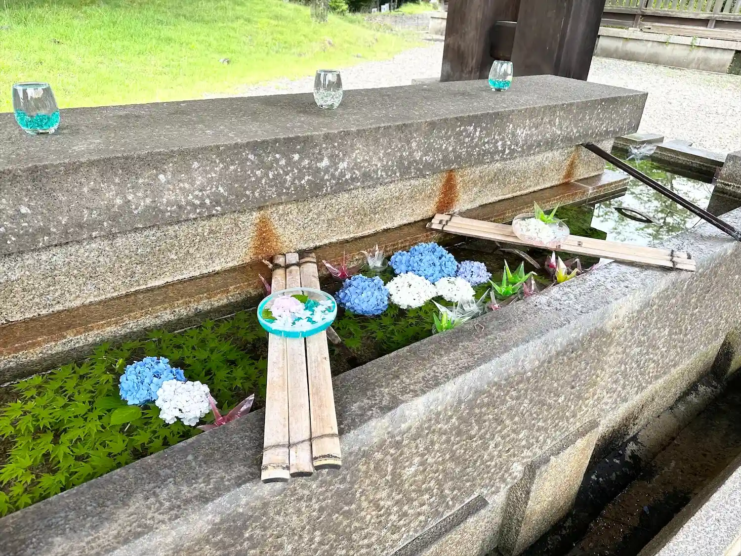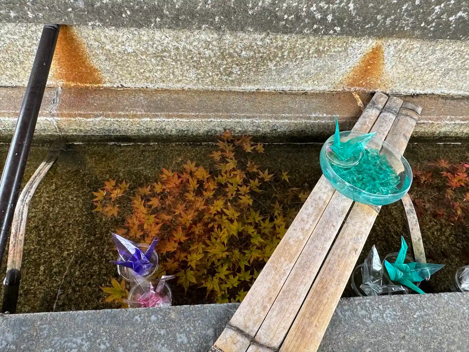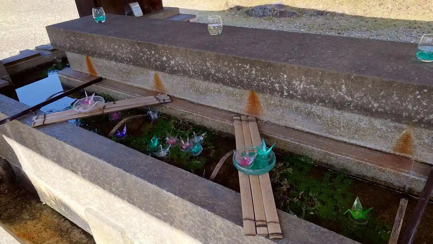 落ち着いた雰囲気で、手水のスケルトンの折り鶴が綺麗だった。