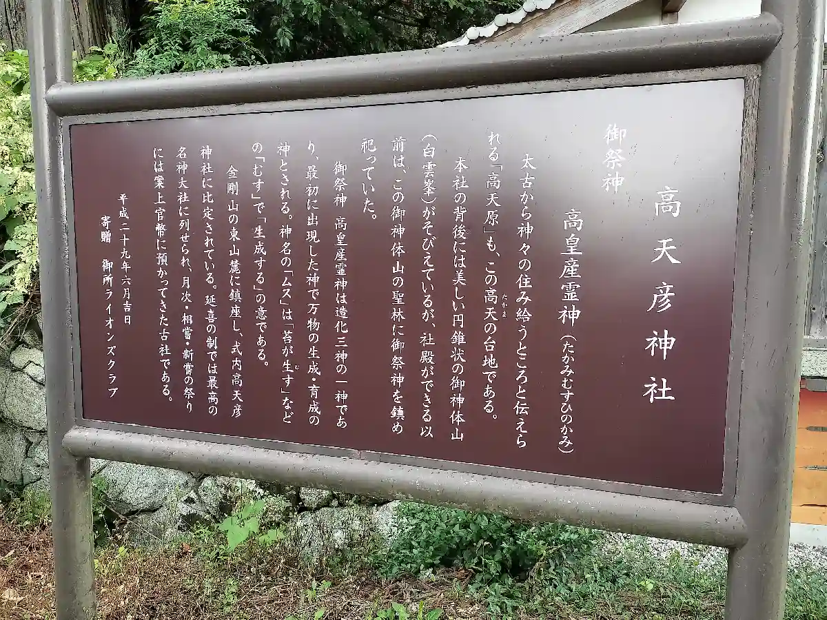 祭神は高皇産霊神。