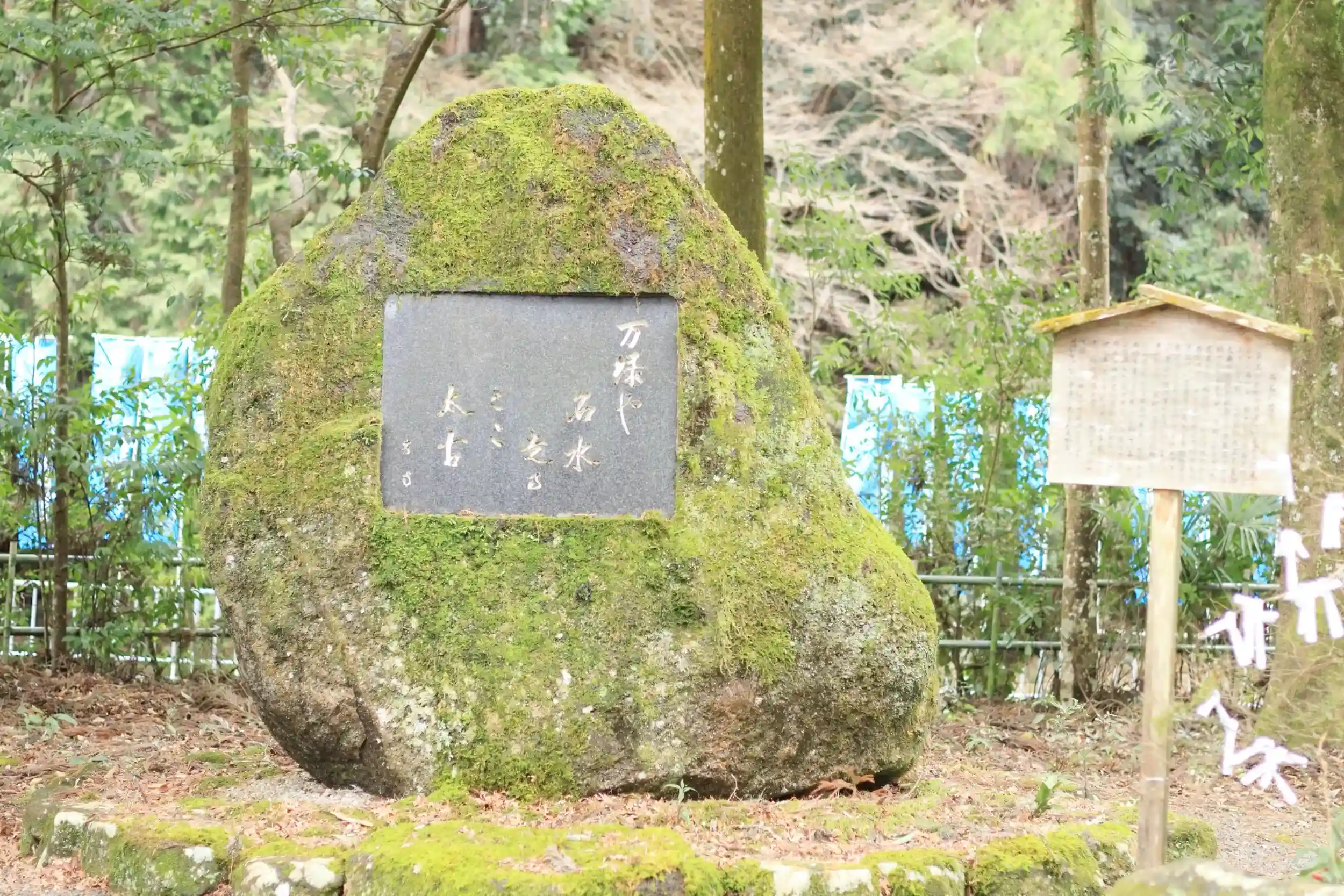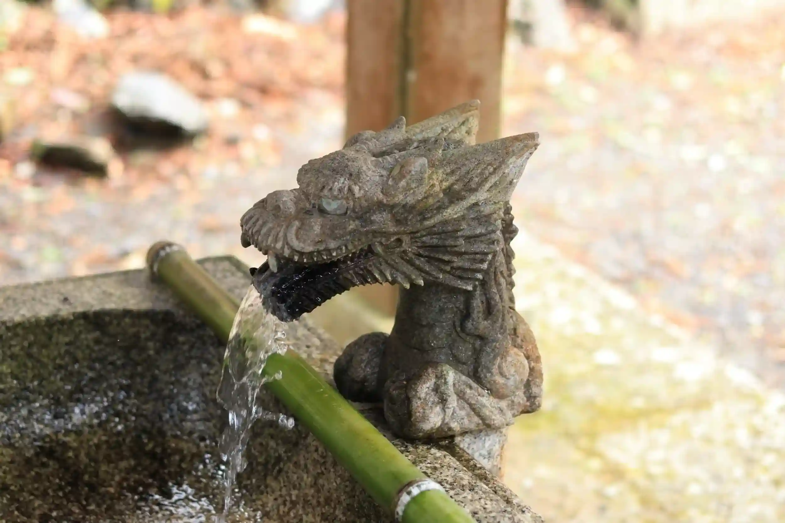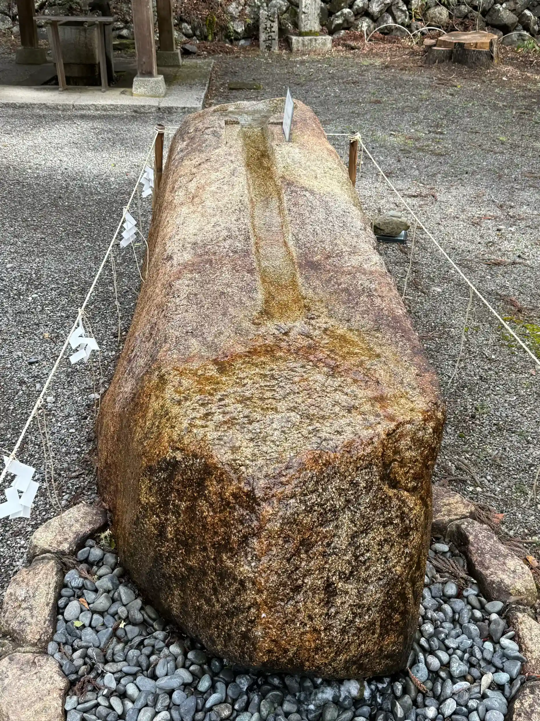 水みくじをする大きな石