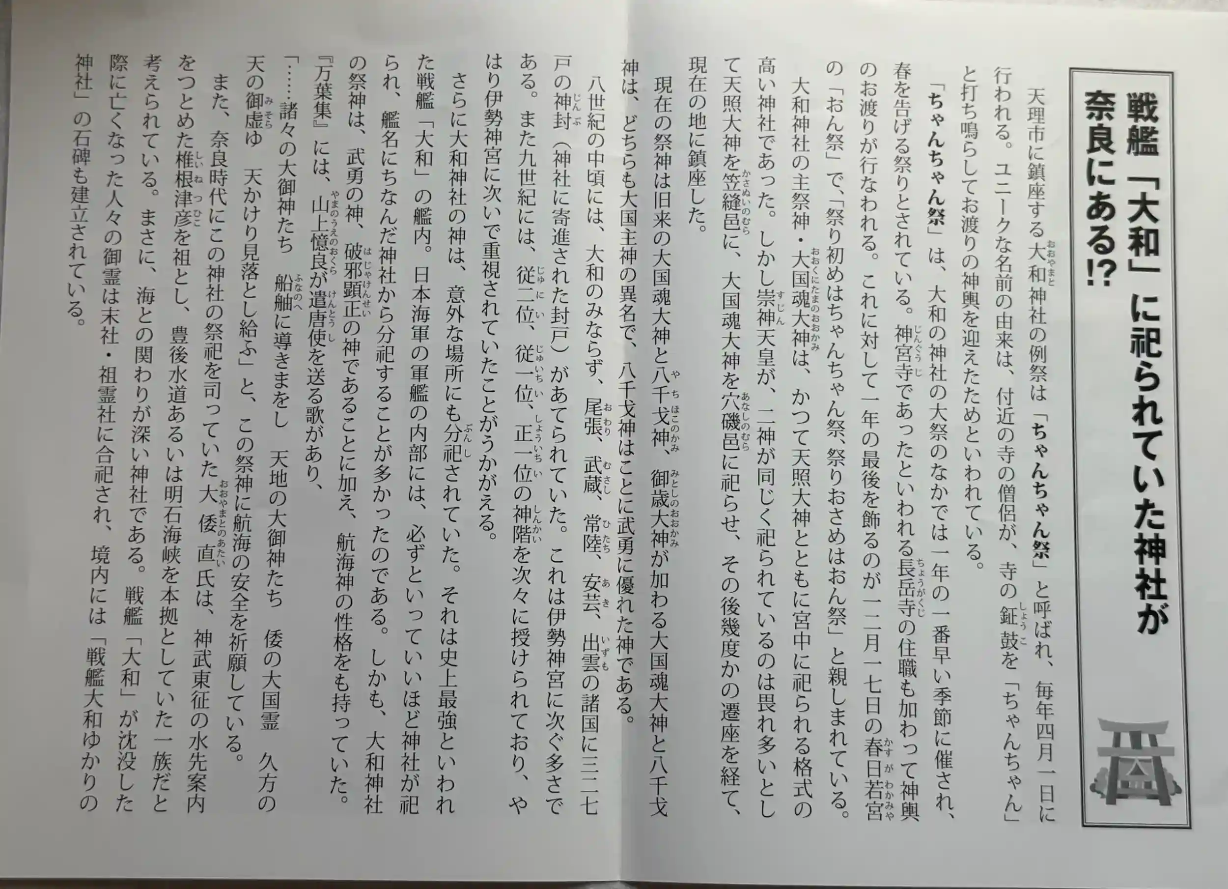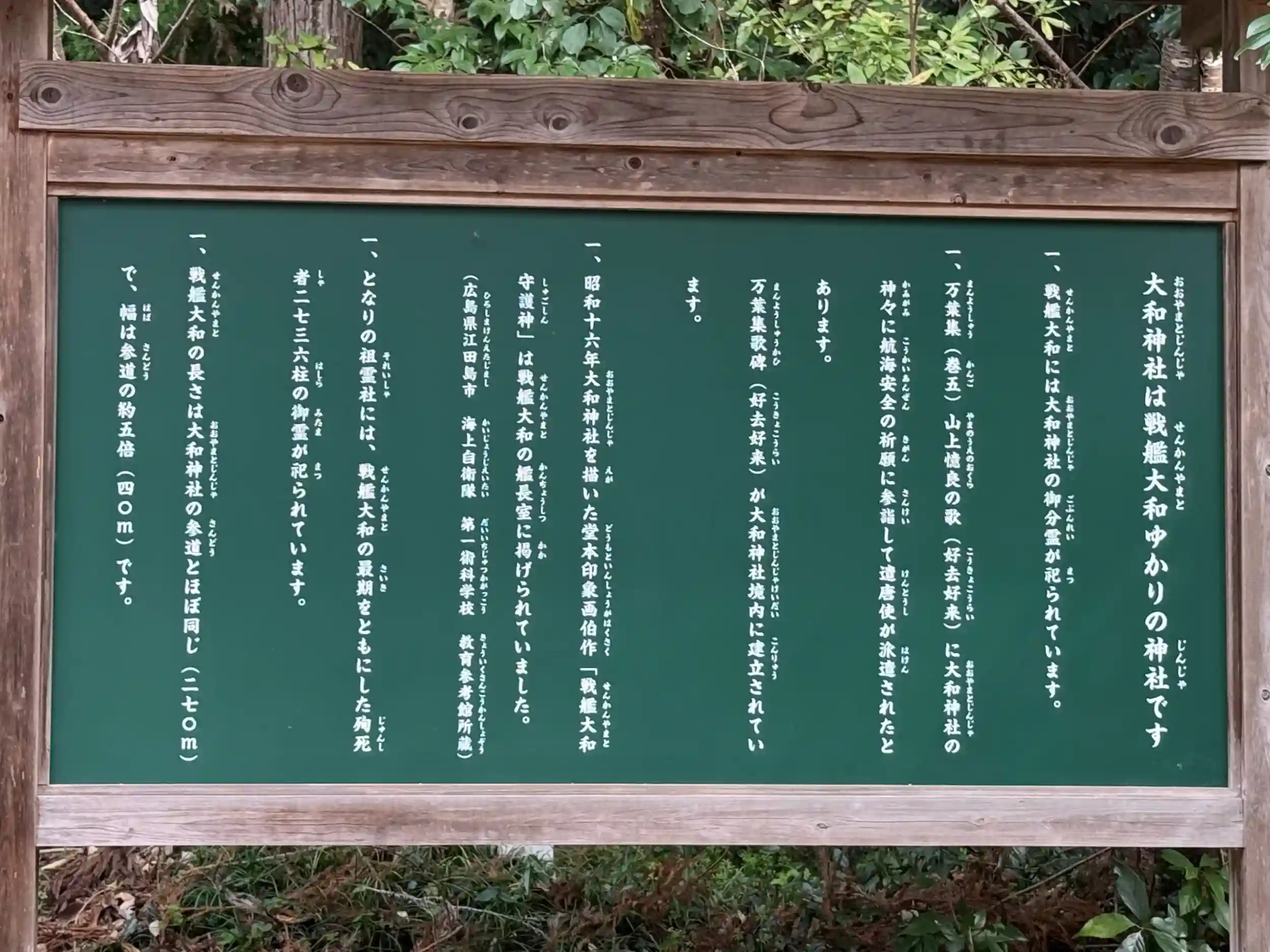 おおやまと神社へ、やまとおおくにたまのおおかみを祀る歴史と由緒のある古社、戦艦大和にもゆかりがあり、大和の祖霊社や展示室もあります。