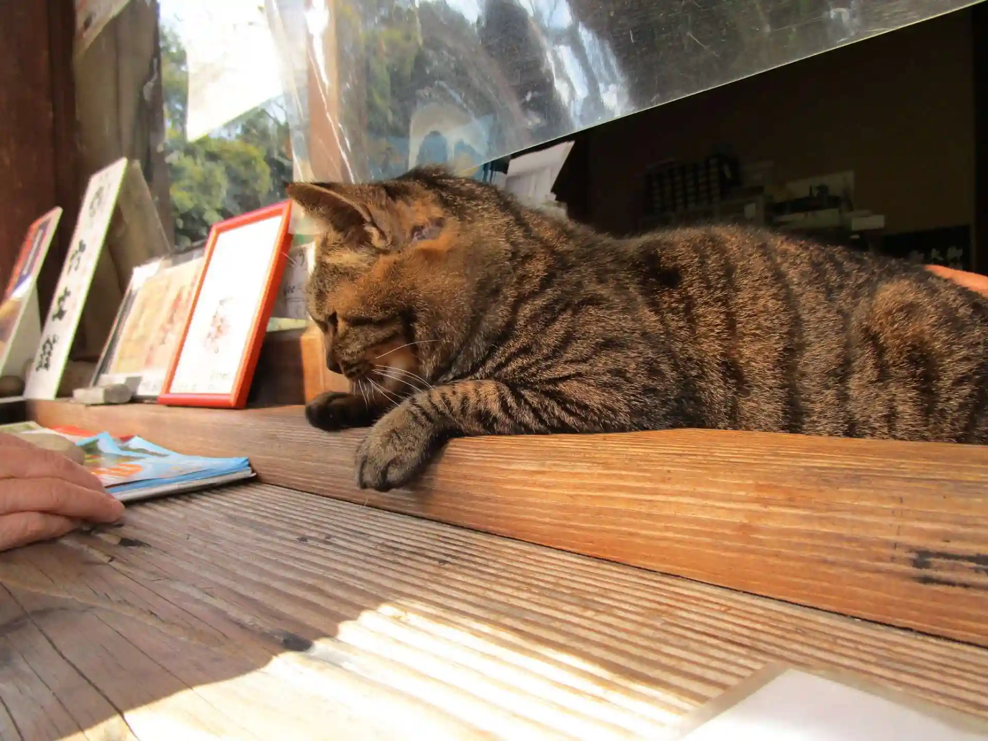 受付のネコちゃん、大勢の訪問者にも身じろぎもせず貫禄がありました。