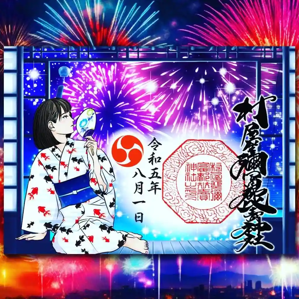 浴衣女性と花火の見開きサイズ御朱印