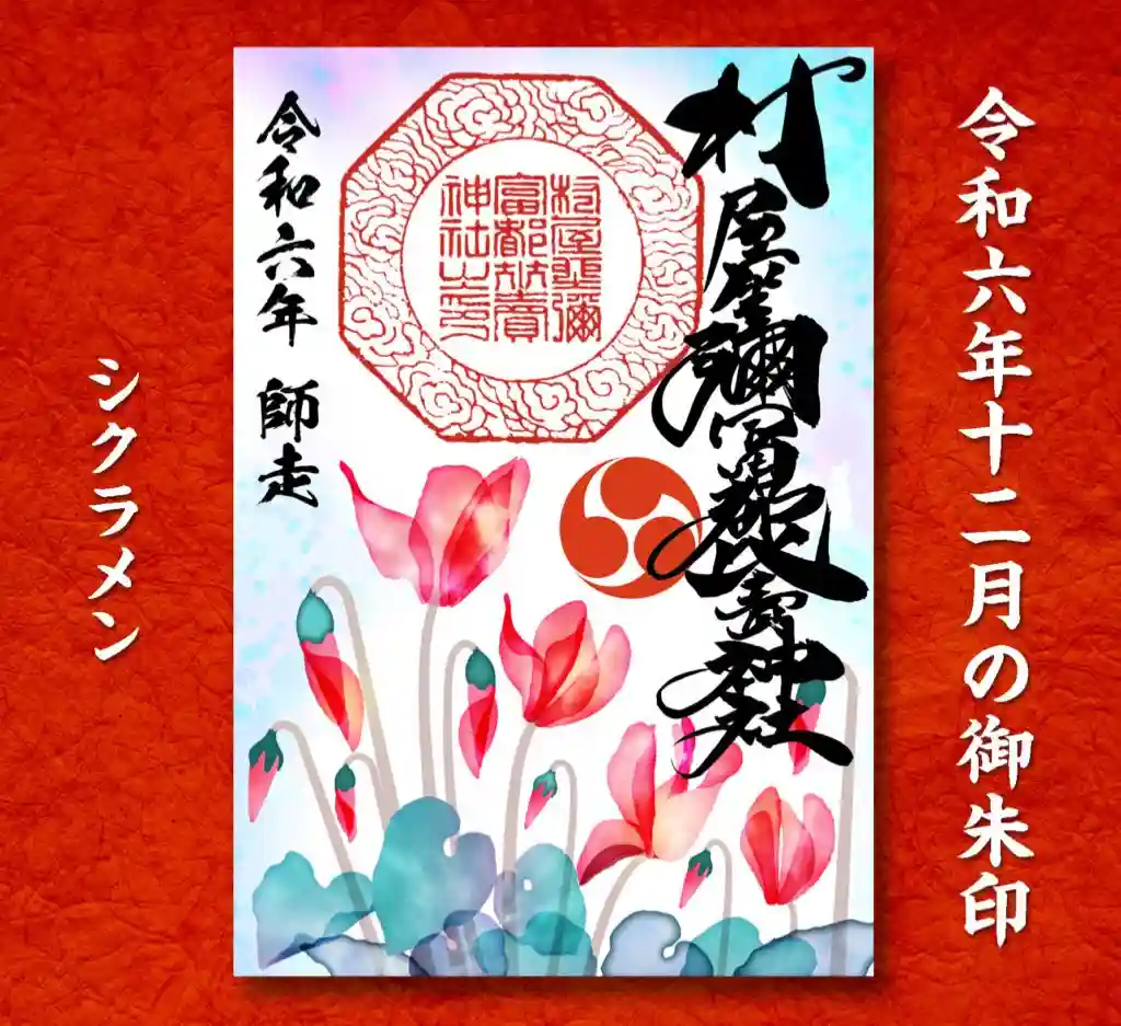 ・12月は菊、落ち葉、シクラメン、流鏑馬の御朱印を用意させていただきました。