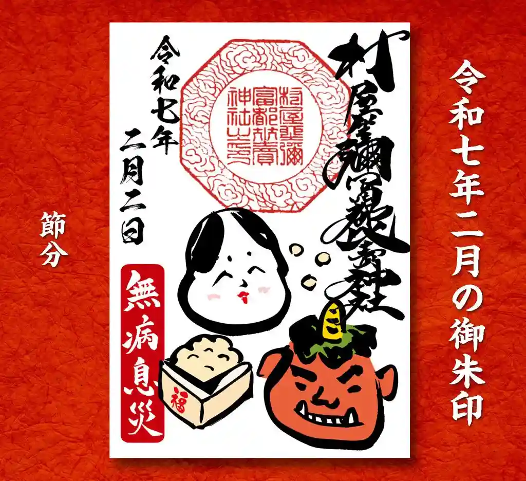 節分の御朱印を奉製させていただきまして。社務所にて頒布いたしております。