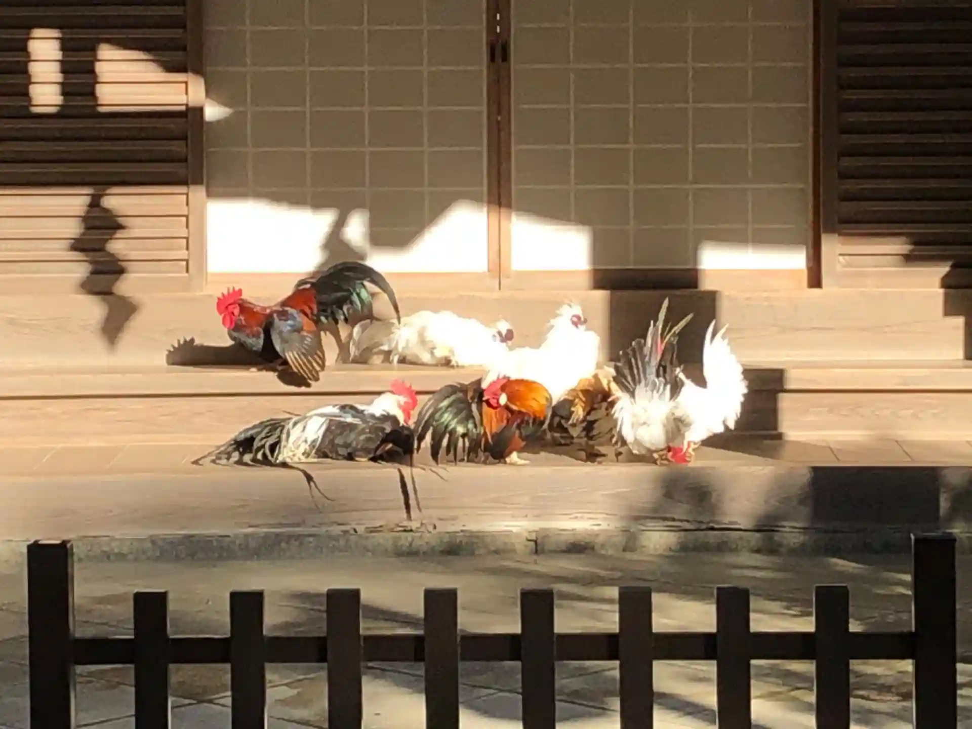 ここでは鶏が放っており、至る所で様々な鶏がコッコと鳴いて参拝者を迎えてくれます。
