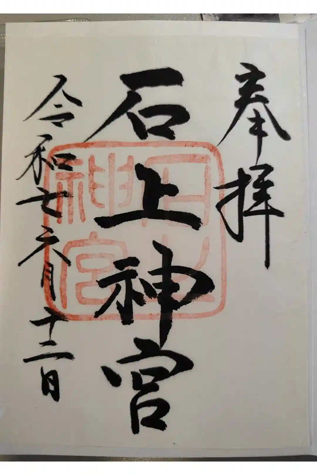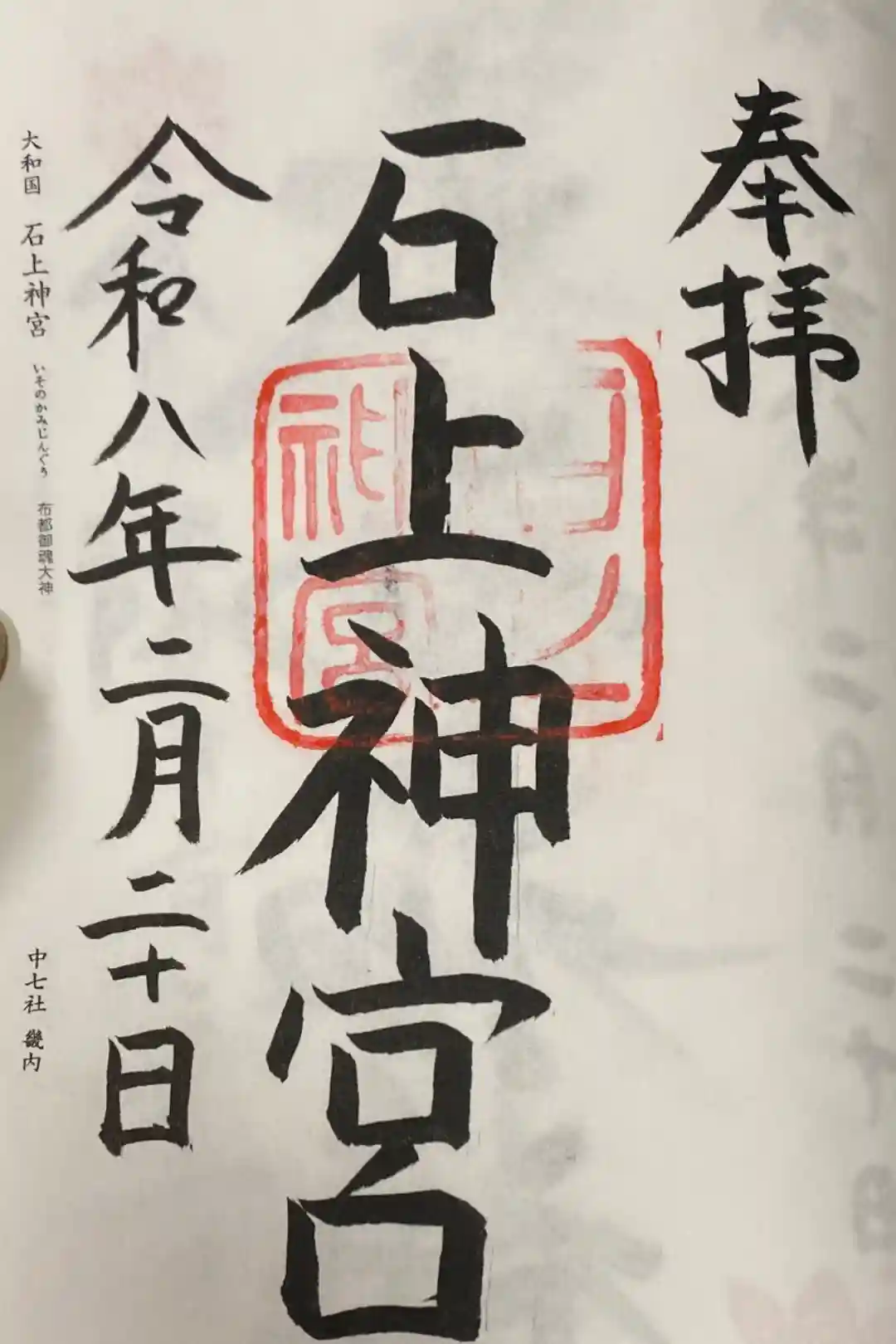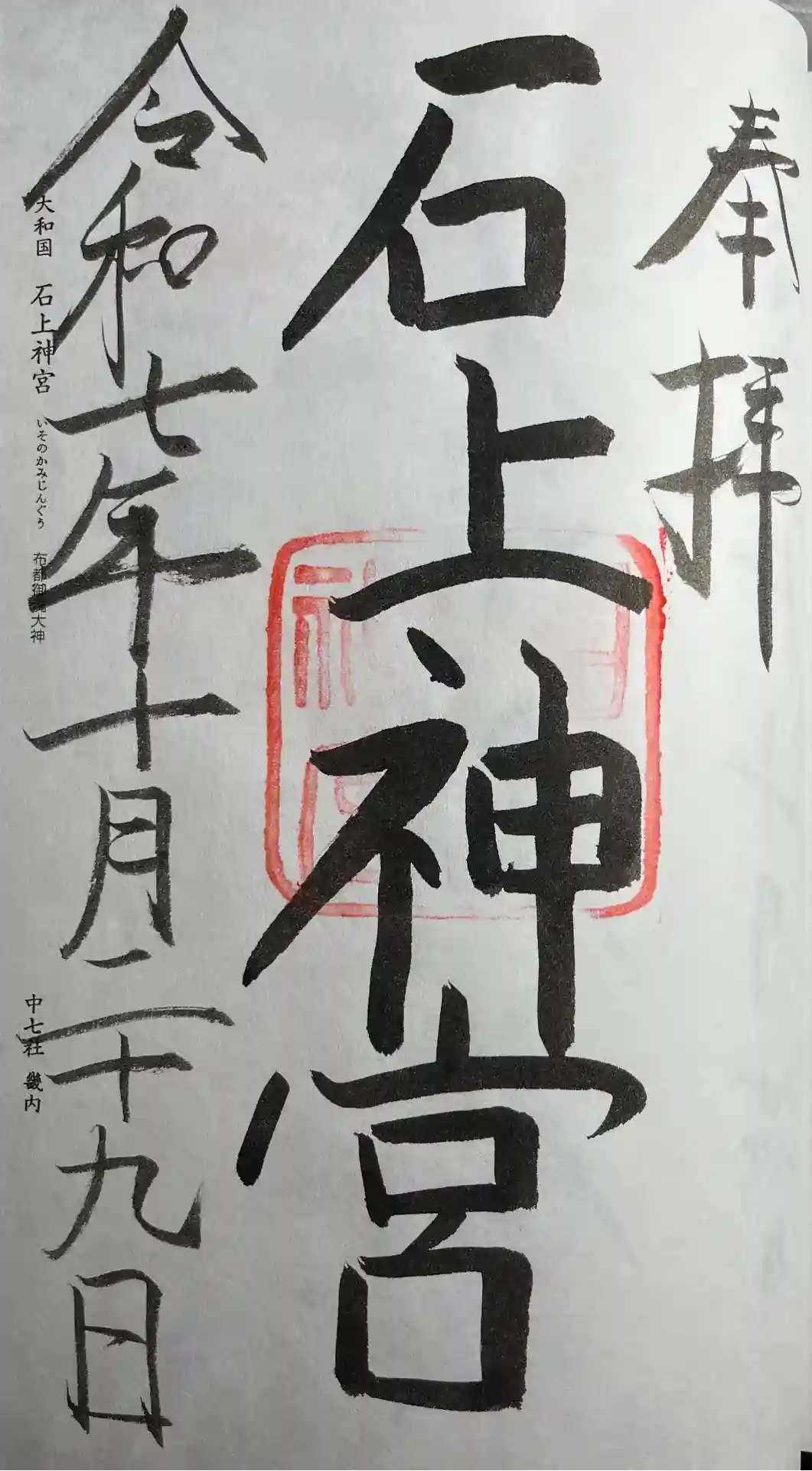 真ん中に石上神宮と書かれ、石上神宮の印が押されています。