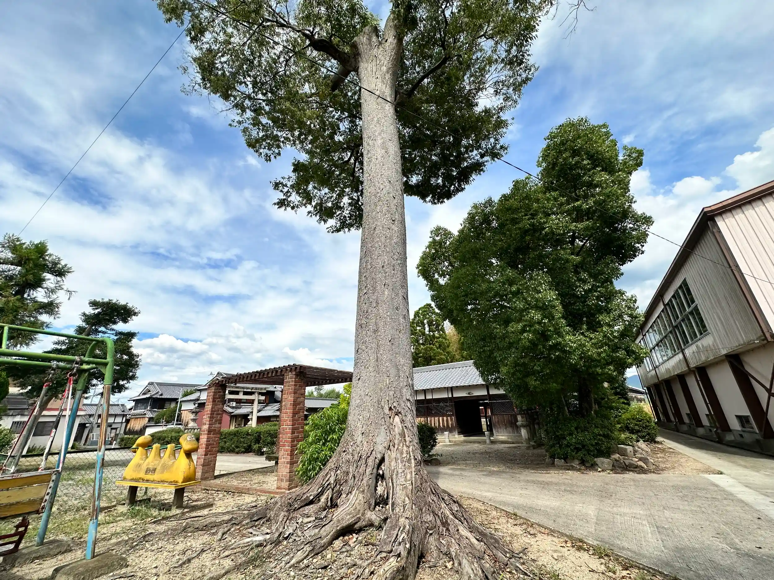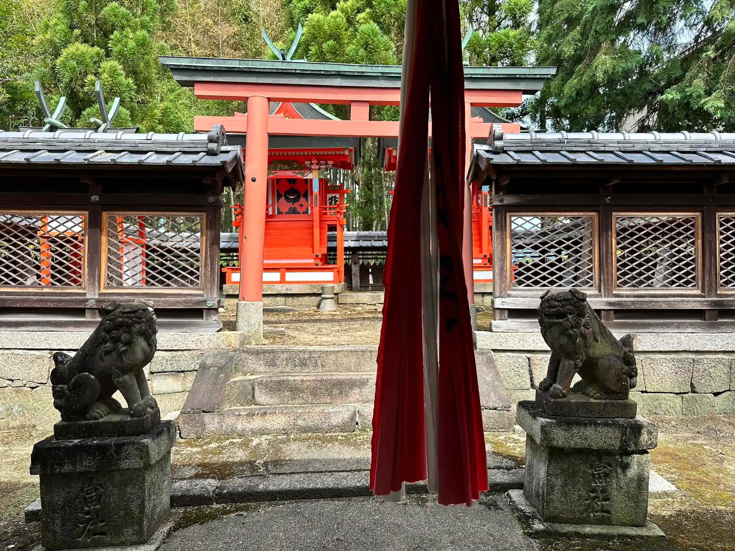 色鮮やかな、祠が印象に残りました、境内公園には途中で折れている、巨樹があります 横の枝より広がり元気よく育っているように感じました