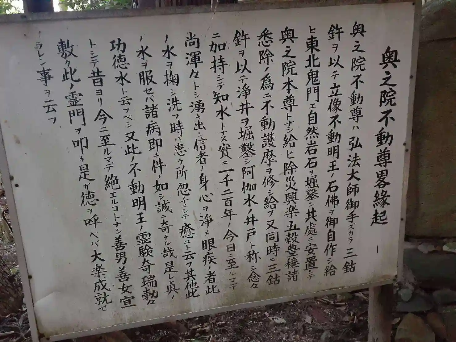 奥の院不動尊 説明板
