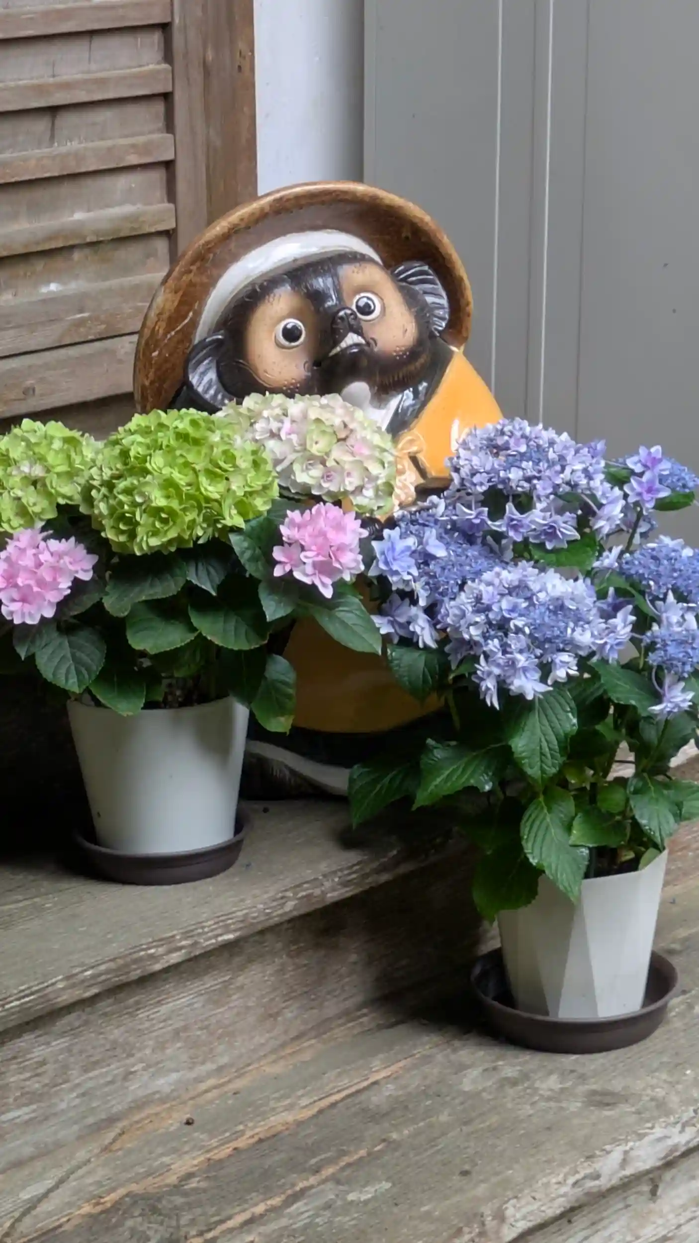 タヌキと紫陽花