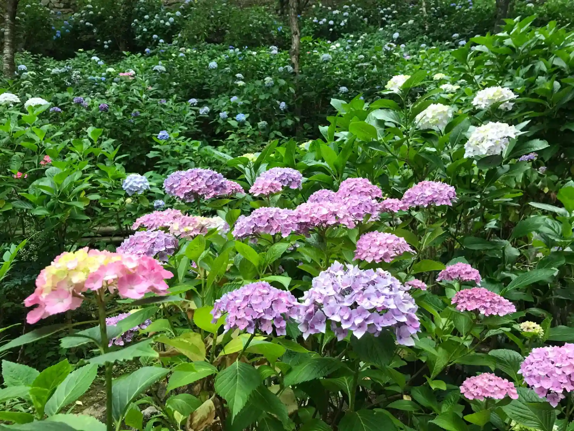 境内には沢山の種類のアジサイが展示されていた。こちらも見ごろを迎えている。