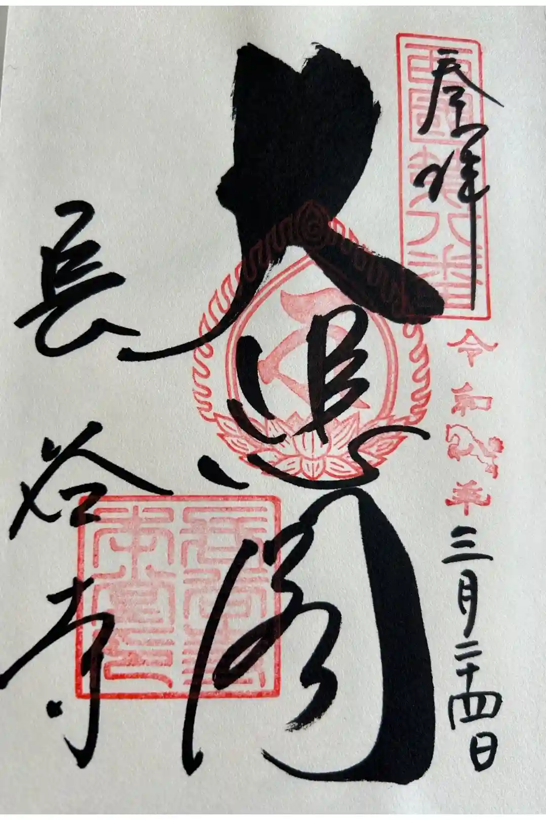 真ん中に愛染明王と書かれ、真ん中に御宝印、左下に長谷寺の文字と長谷寺本堂印が押されています。
