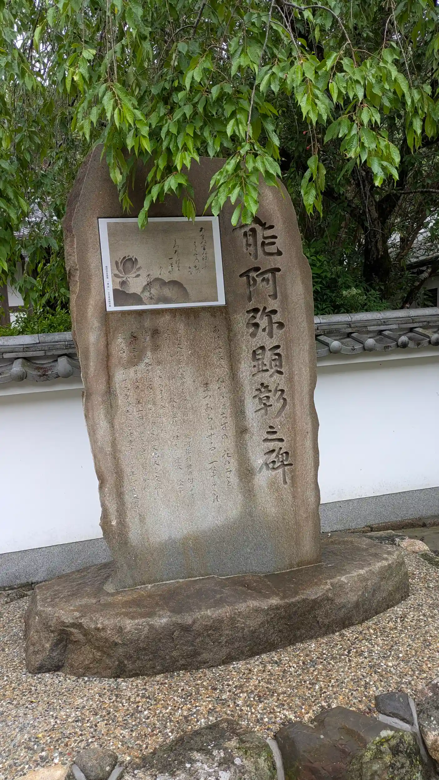 長谷寺仁王門をくぐってすぐ左手。山門は柵があります。山門右手には能阿弥顕彰三碑があり、辞世の句と晩年の様子が彫られています。調べたら昨年の3月に建立されたばかりですね。長谷寺は能阿弥終焉の地とされているそうですが墓や史料が残っていないそうです。