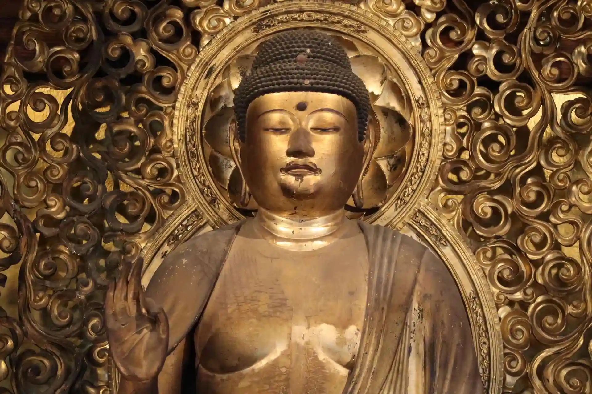 この阿弥陀如来坐像と脇侍の観音菩薩、勢至菩薩は県指定文化財です。